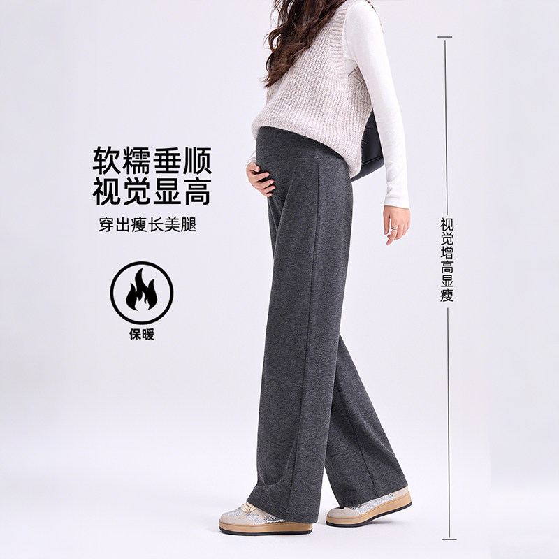 婧麒孕妇阔腿裤秋冬款外穿2025新款加绒保暖裤不勒肚子长裤孕妇装