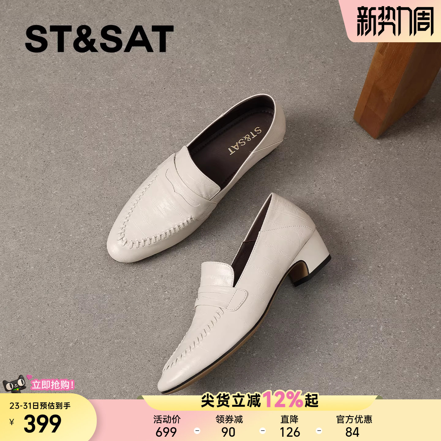 星期六简约风真皮乐福鞋女2026春季新款粗跟深口单鞋小皮鞋妈妈鞋