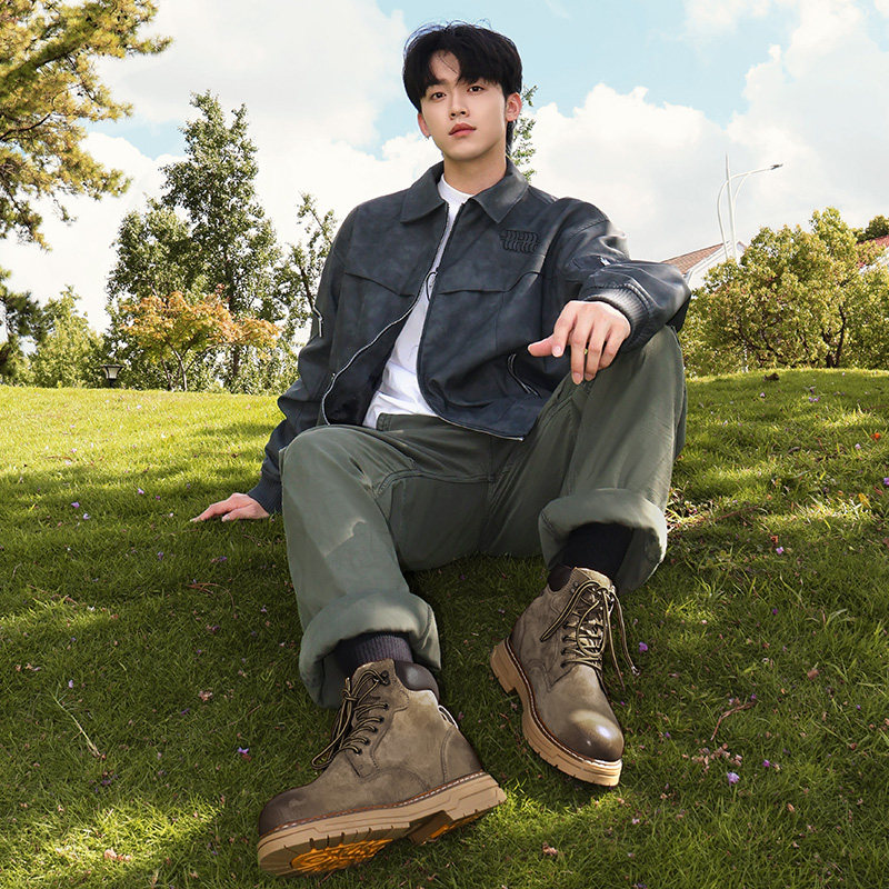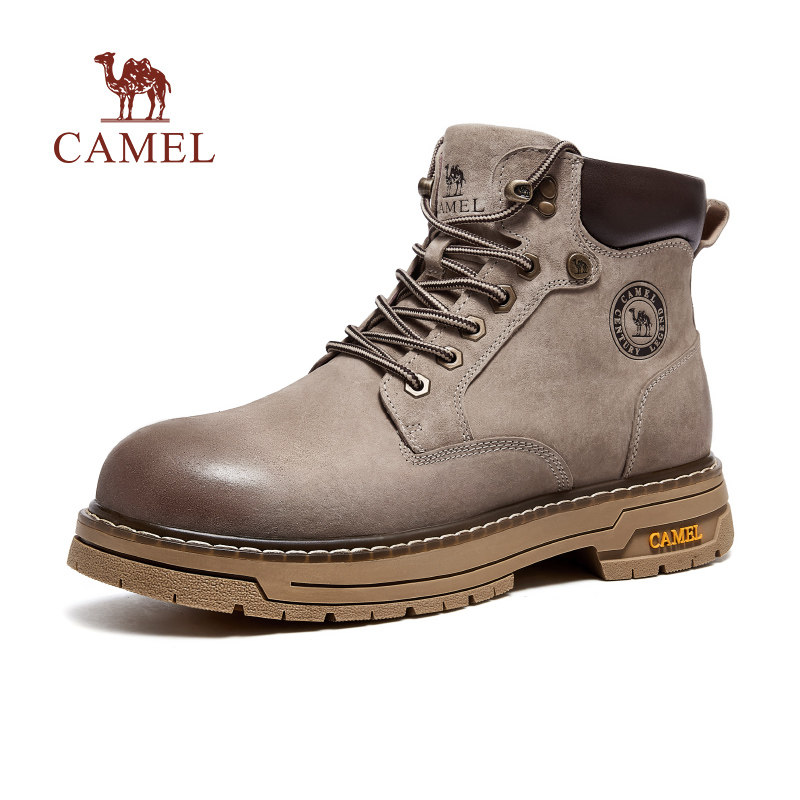 骆驼男鞋2026春季美式高帮复古真皮工装靴增高厚底户外耐磨马丁靴