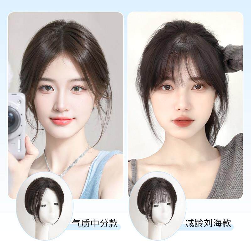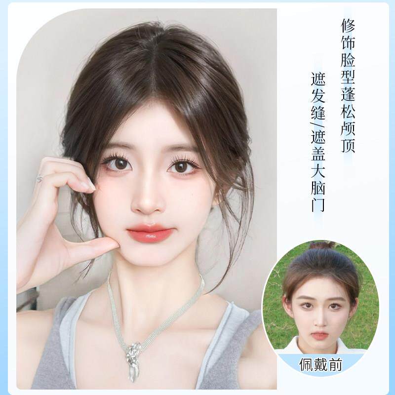 八字刘海假发女片头顶量蓬松彷真发假刘海高颅顶遮白发假发片前额