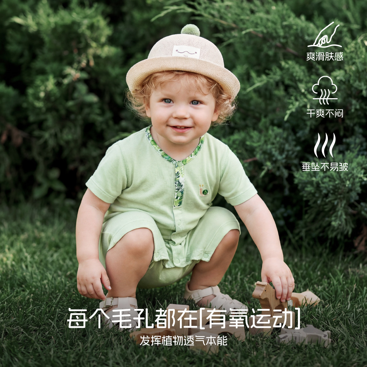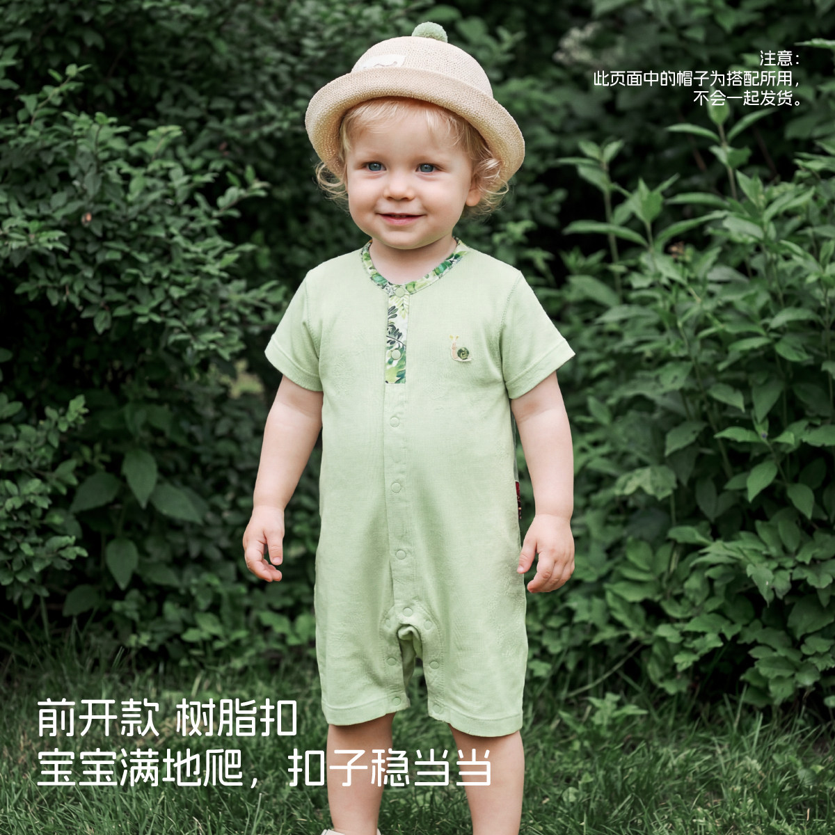 【菌林花语】aqpa爱帕宝宝莫代尔棉短袖前开连体衣婴儿哈衣连体衣