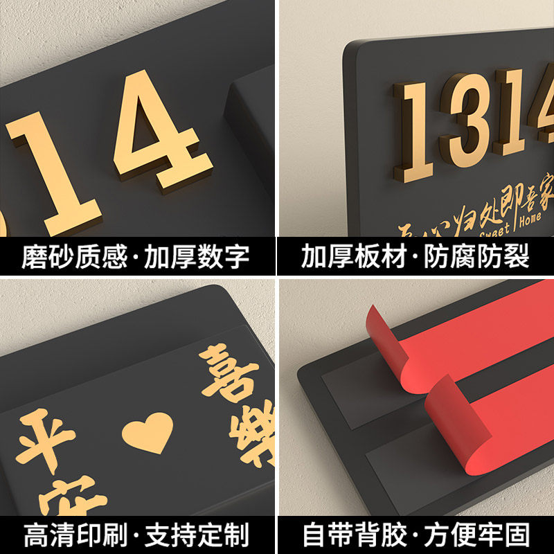 门牌号码牌家用入户门牌号高级感轻奢创意门口装饰网红风插花带灯住宅民宿房间号牌标识牌门牌2025新款定制
