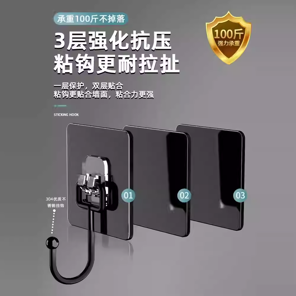 免打孔挂钩强力粘胶宿舍墙壁壁挂墙透明家用无痕承重厨房粘贴粘钩