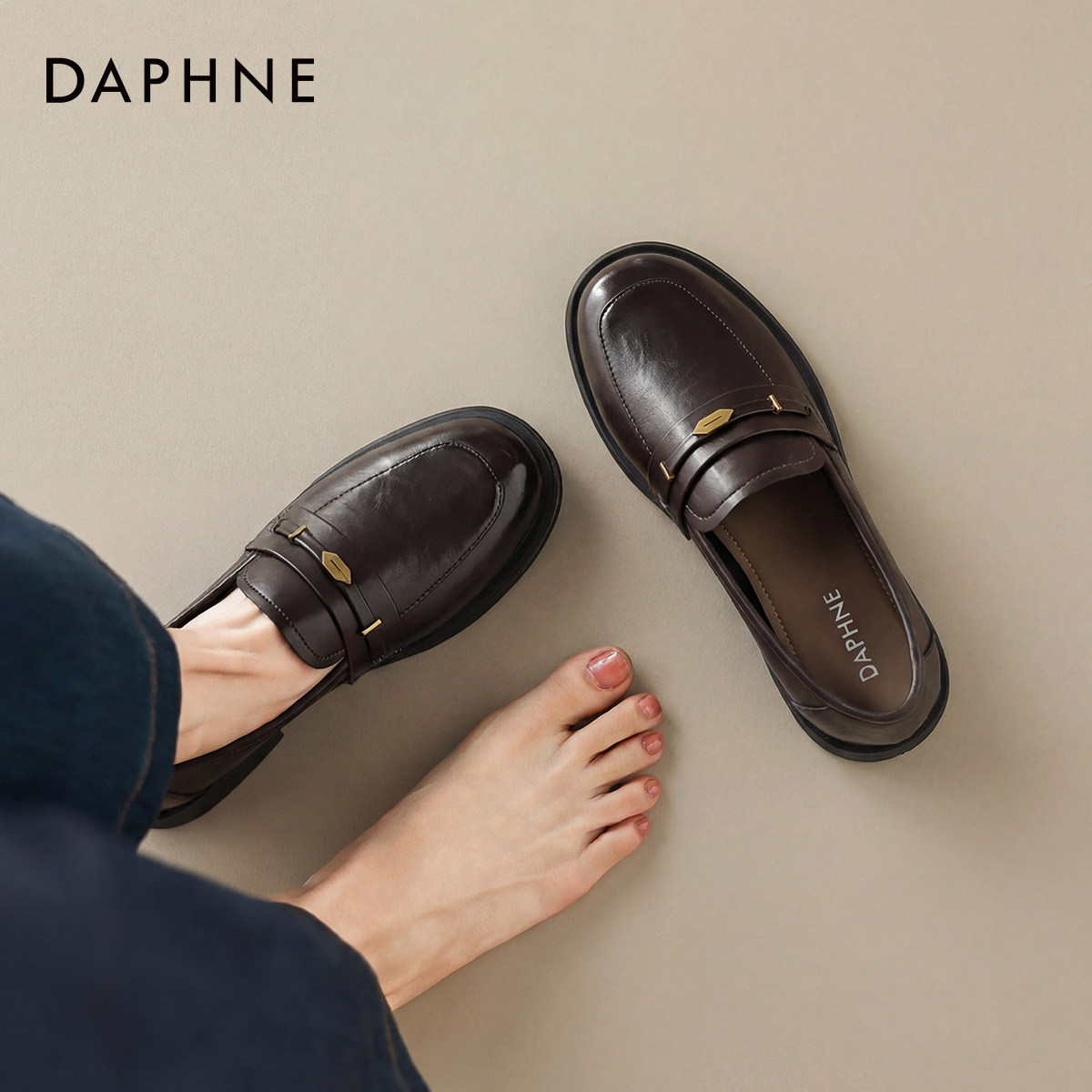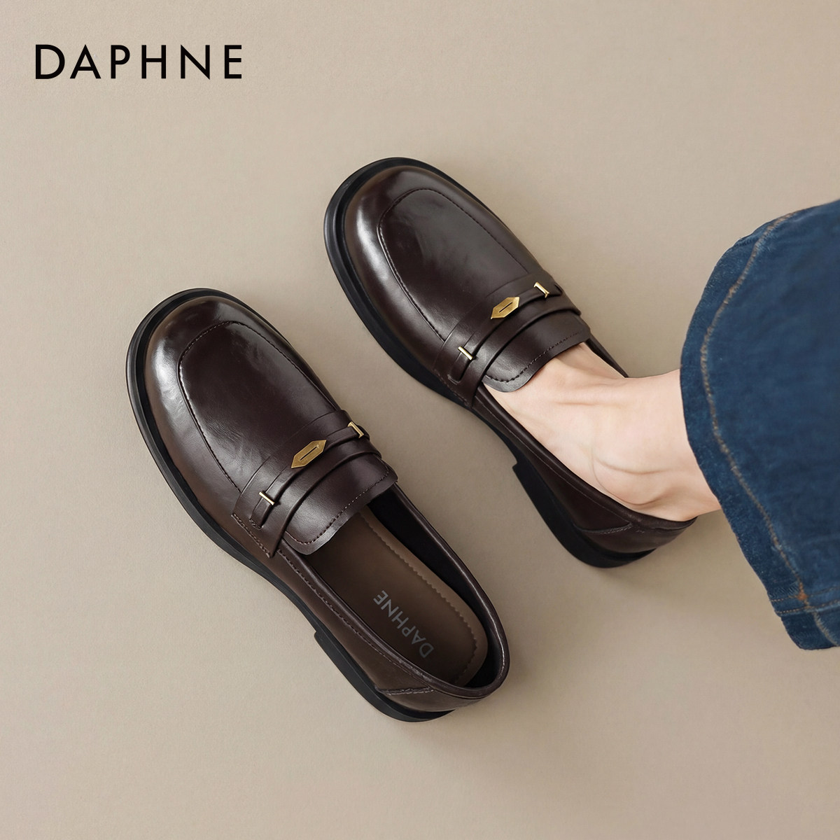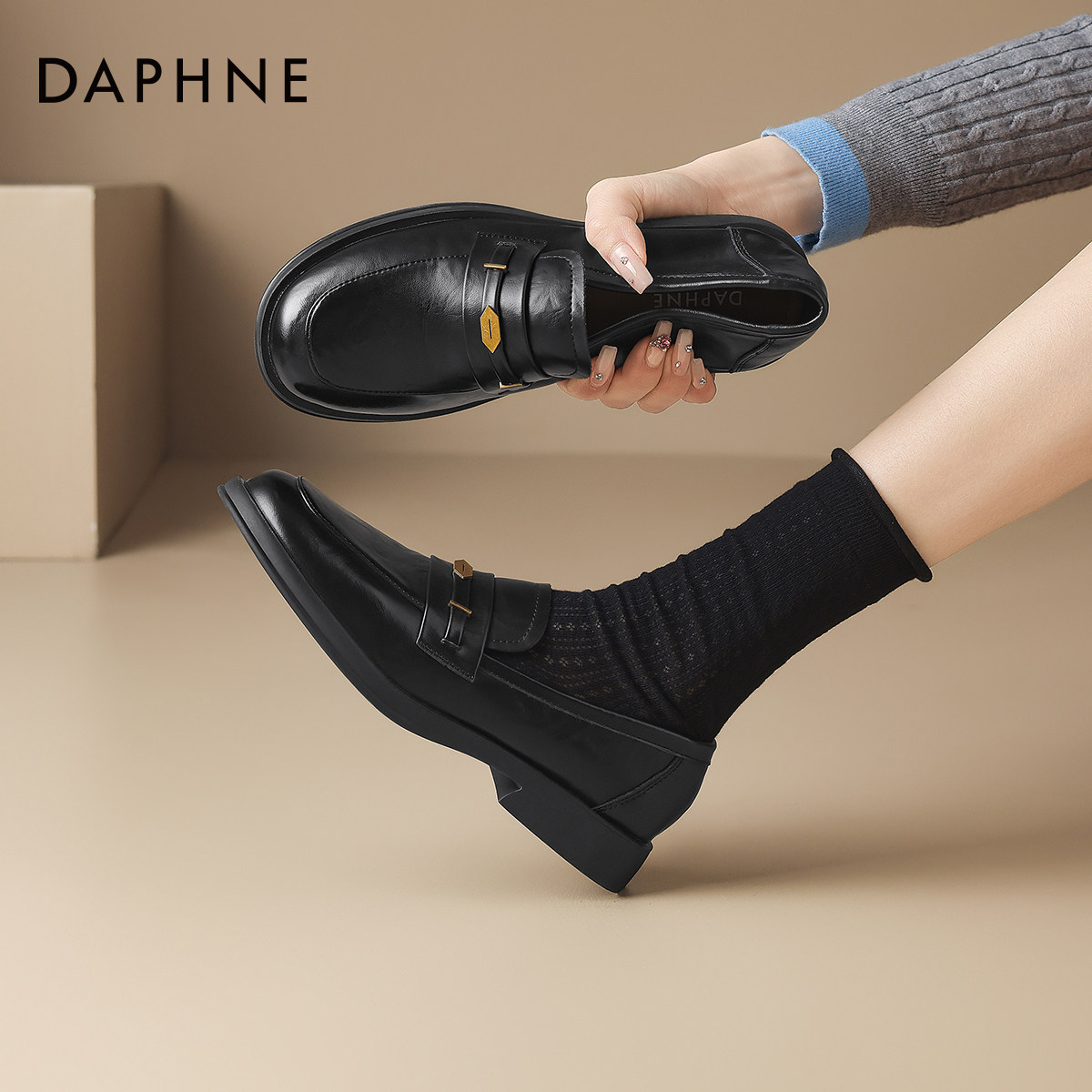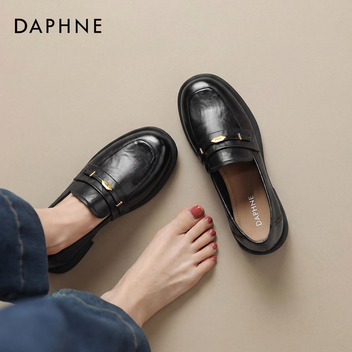 达芙妮黑色乐福鞋女2026新款一脚蹬豆豆鞋英伦风小皮鞋通勤平底鞋