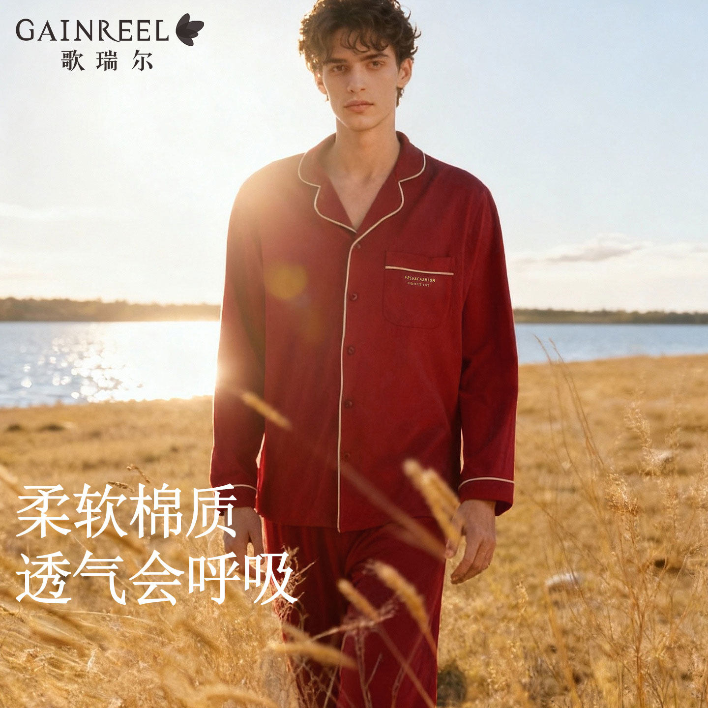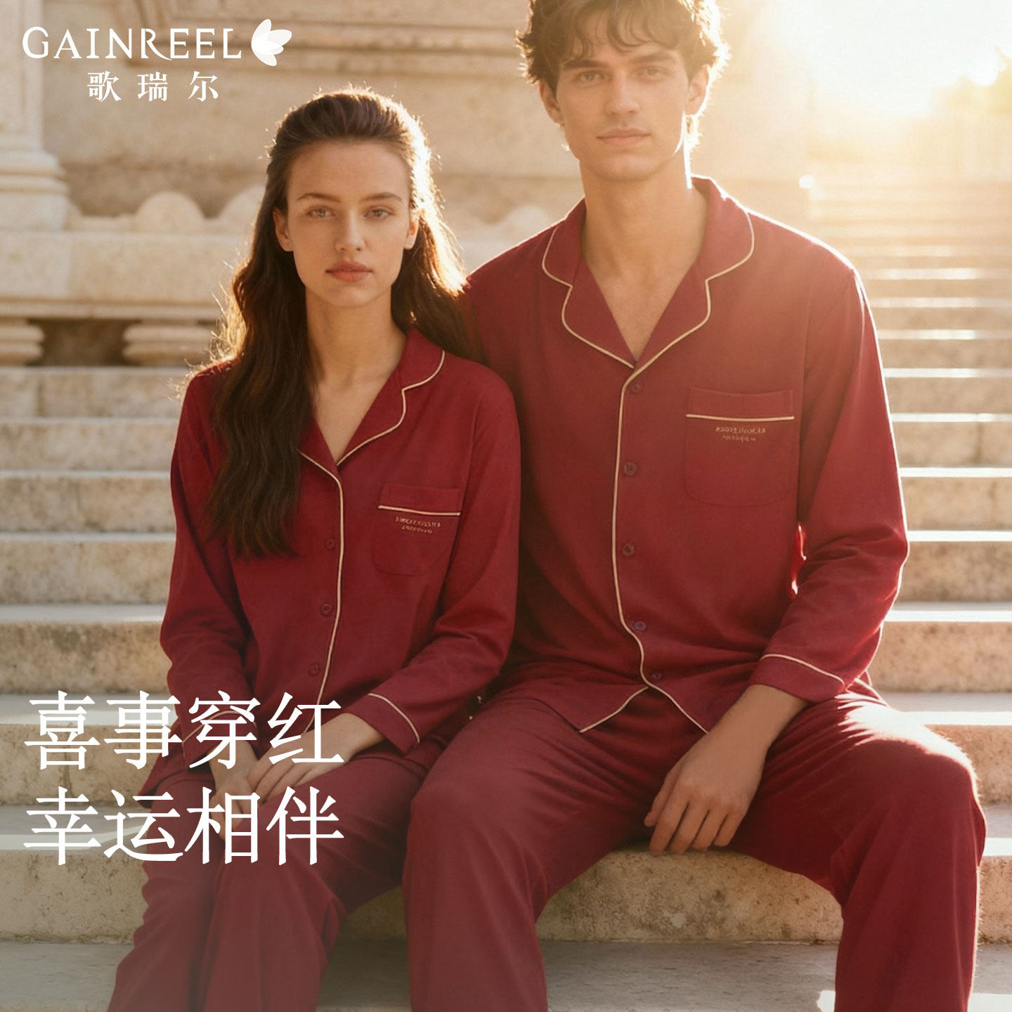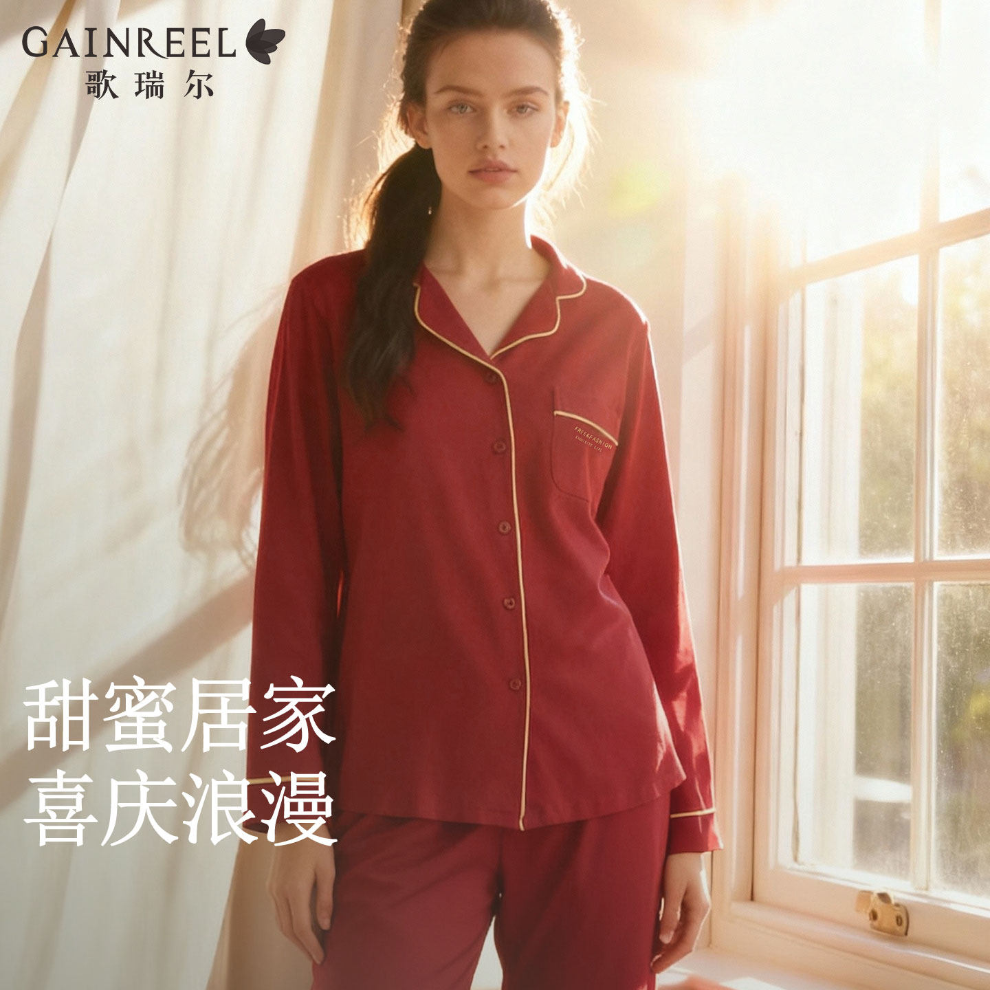 歌瑞尔新款红色睡衣结婚新婚情侣本命年棉质柔软长袖家居服套装