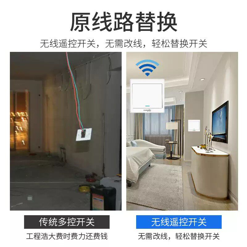 无线遥控开关双控免布线面板家用电灯子母220v远程控制随意贴无限