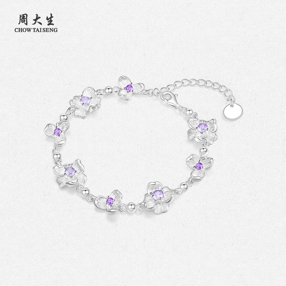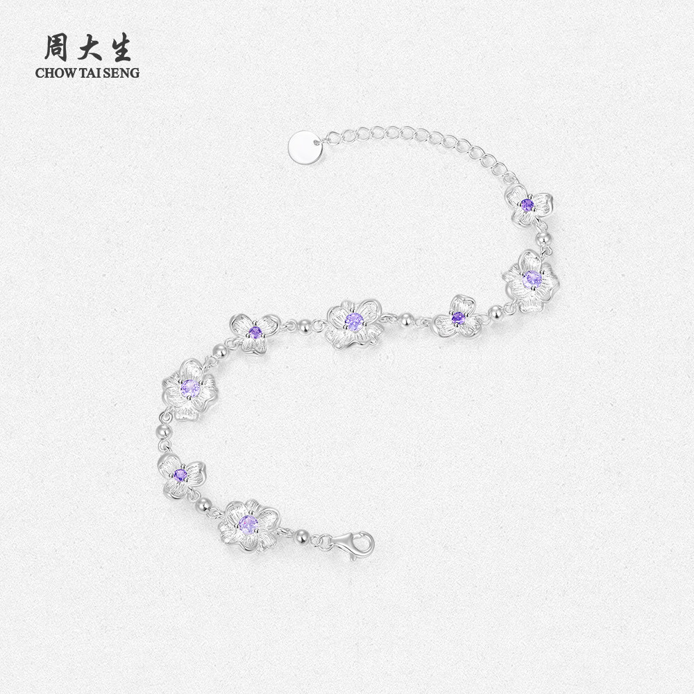 周大生山野茉莉S925纯银手链女款国风轻奢高级手饰生日礼物送女友