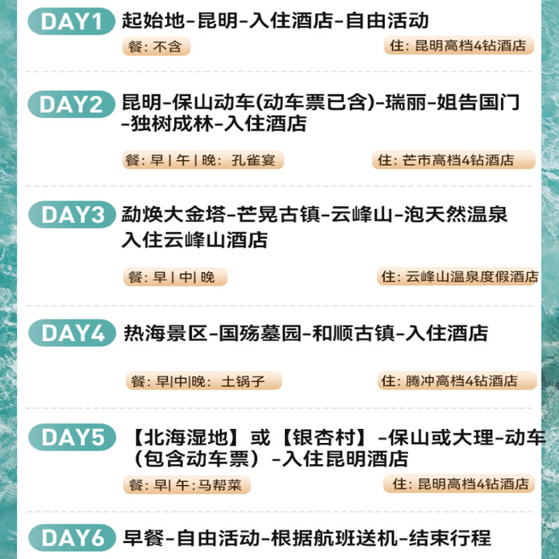 云南旅游腾冲芒市瑞丽6天5晚跟团游包机票飞猪旅行