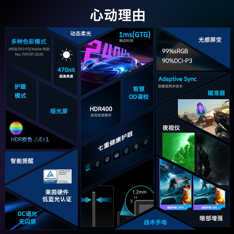 创维23.8英寸240Hz电竞显示器IPS电脑屏470亮度 F24G30F G24 GT2