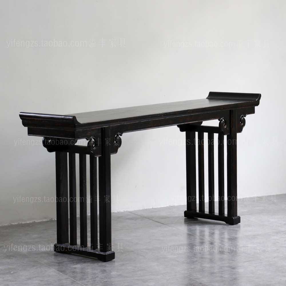 新中式复古玄关台黑色做旧翘头案台实木供桌神台仿古榆木禅意条几