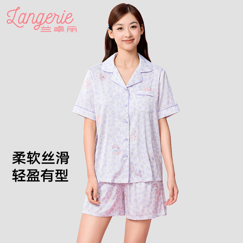 兰卓丽商场同款时尚印花家居服女士套装冰雪丝睡衣短袖短裤可外穿