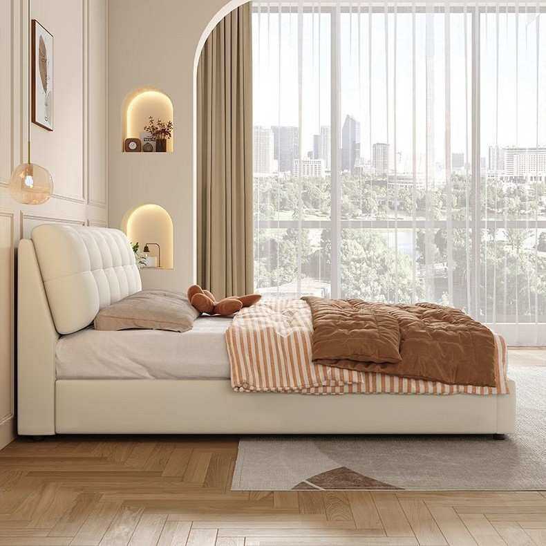 轻奢奶油风皮艺床泡芙双人1.8x2米大床1.5x2米主卧室奶油泡芙婚床