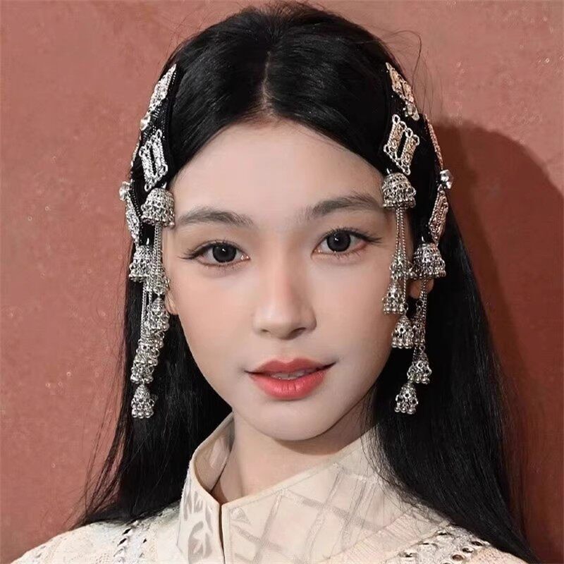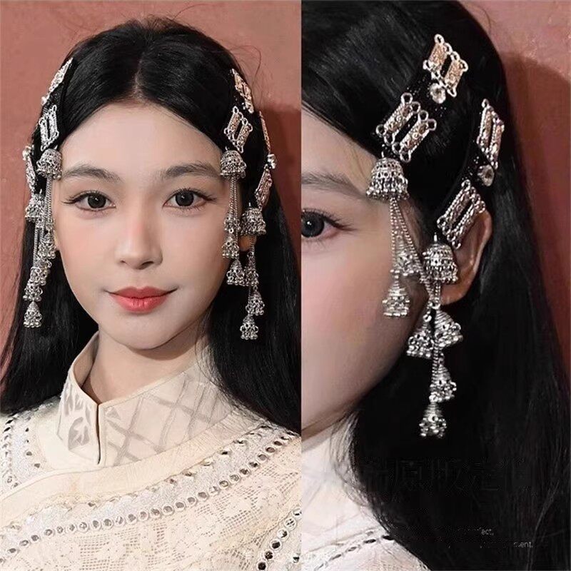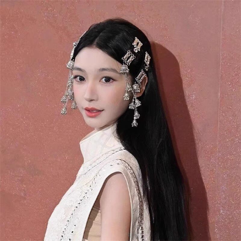 易梦玲同款流苏银色发饰民族风长款发夹发饰女刘海夹子蒙古族草原