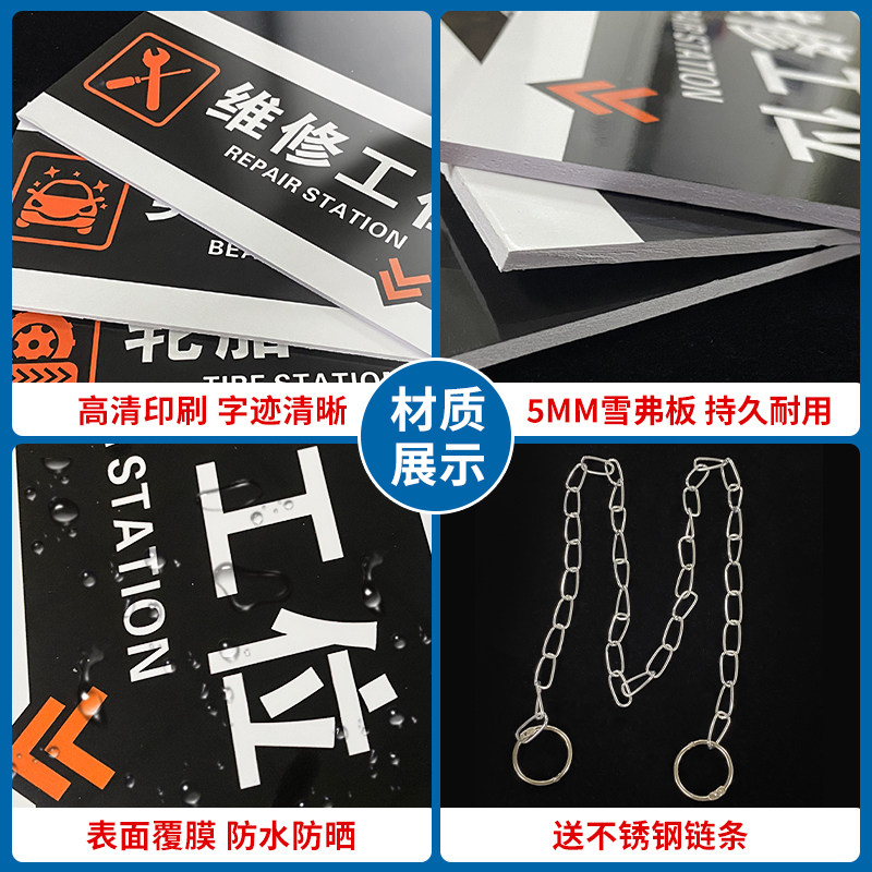 4s店区域指示牌汽车保养洗车精洗工位维修工位美容配件工位吊牌指引区域牌汽修厂养护保养分区挂牌提示牌定制