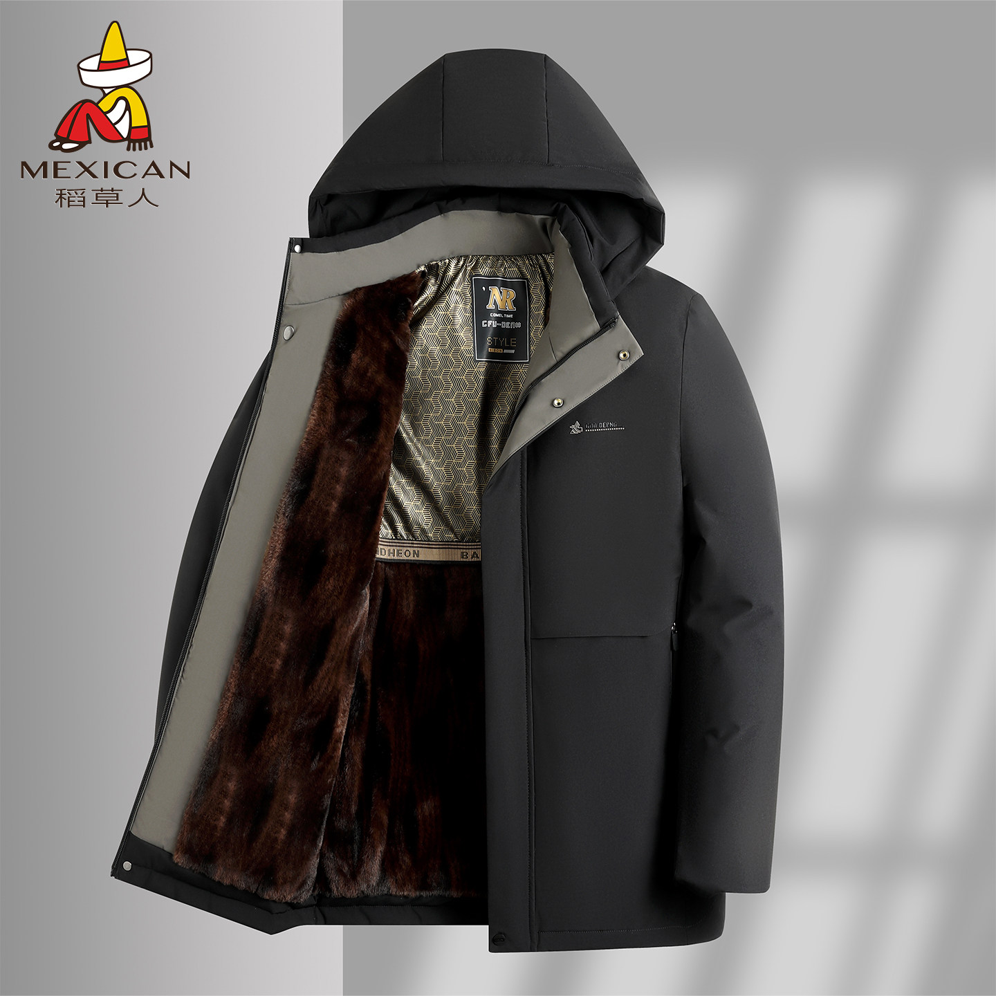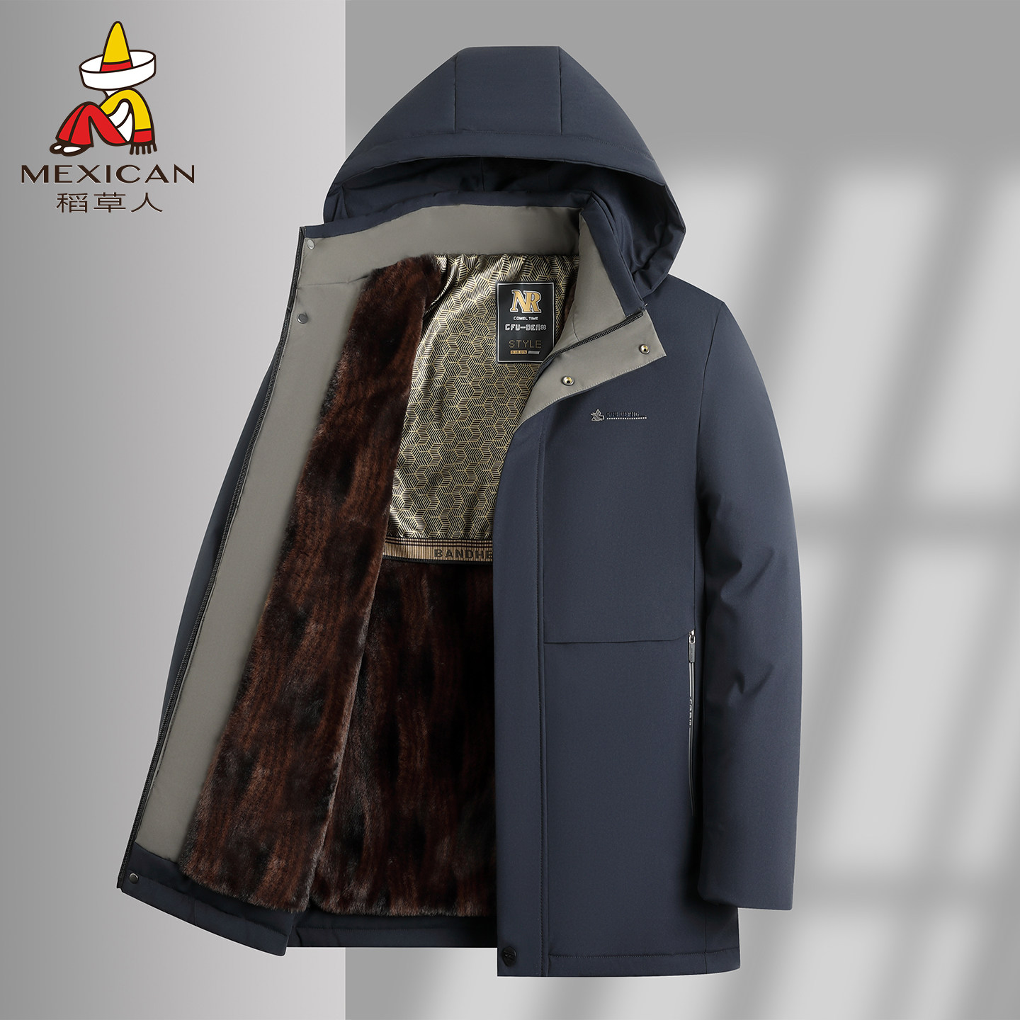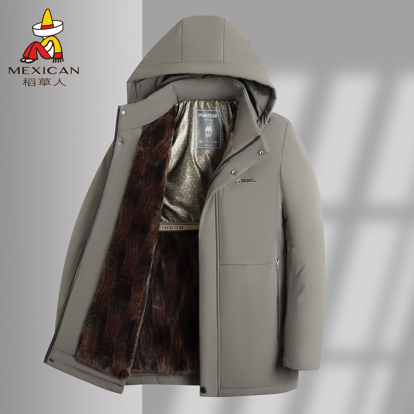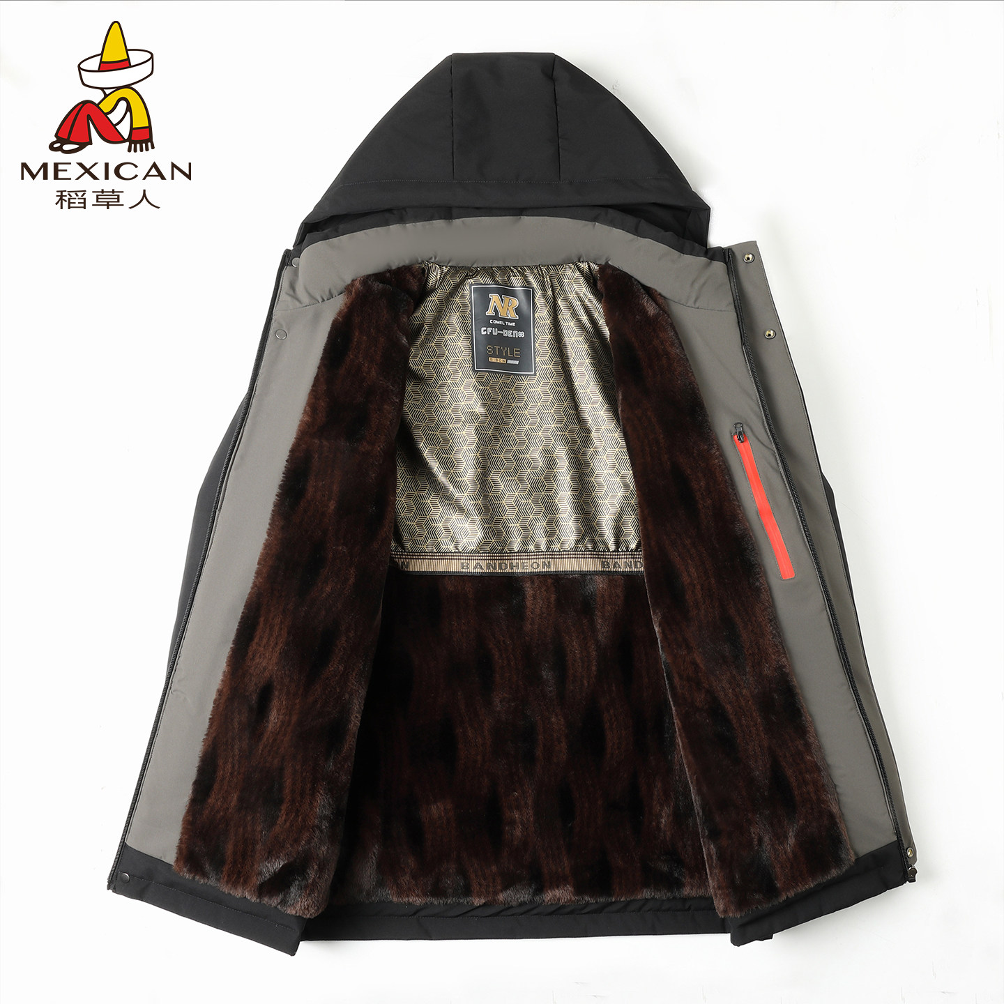 稻草人金貂绒派克服男士加厚棉服外套冬季中老年爸爸装御寒棉衣J