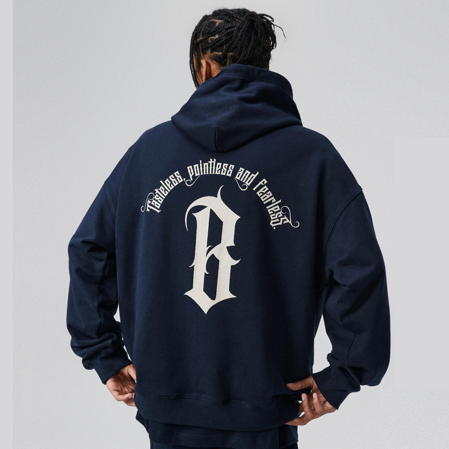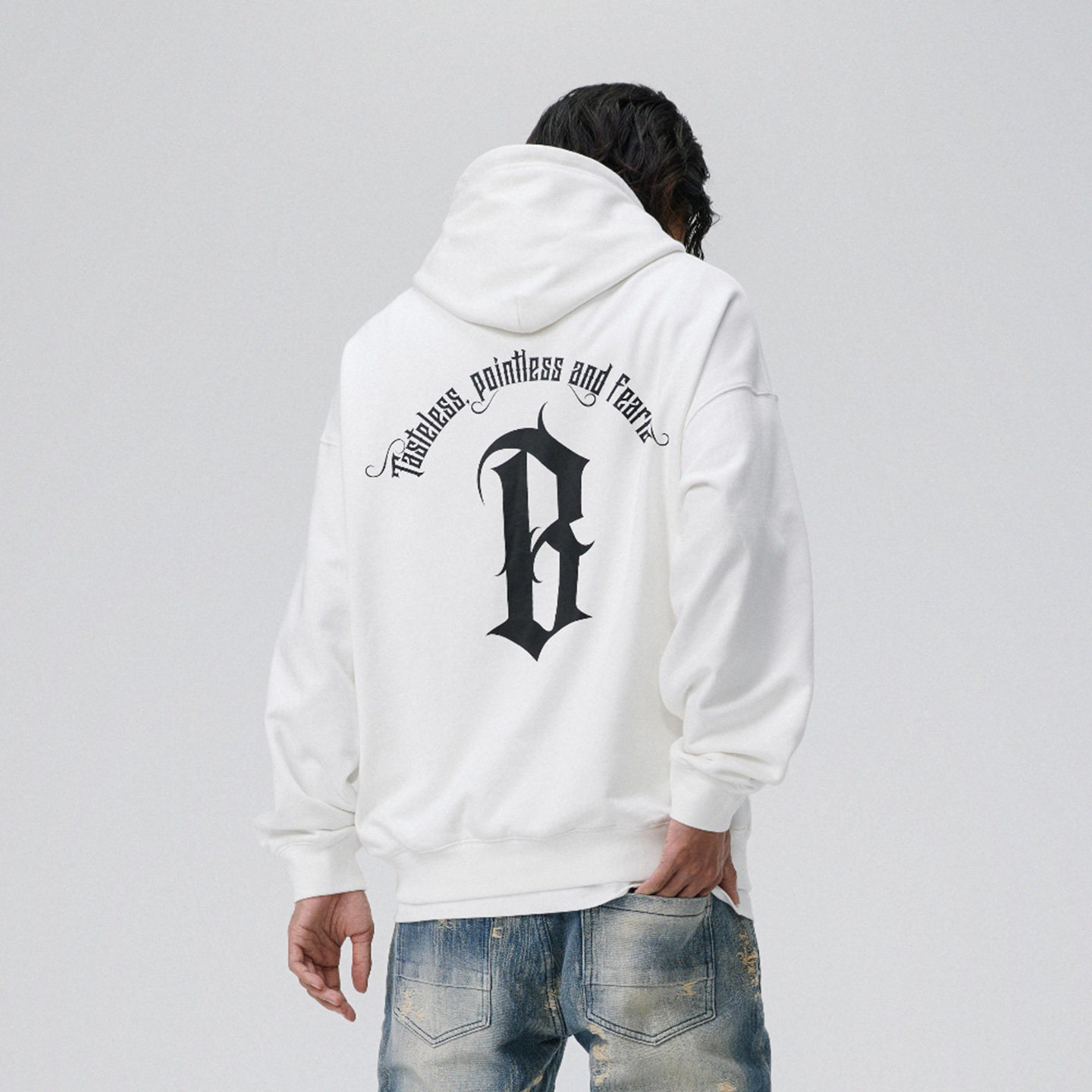 BONELESS圆弧基础字体logo印花加绒连帽卫衣美式重磅春秋帽衫外套