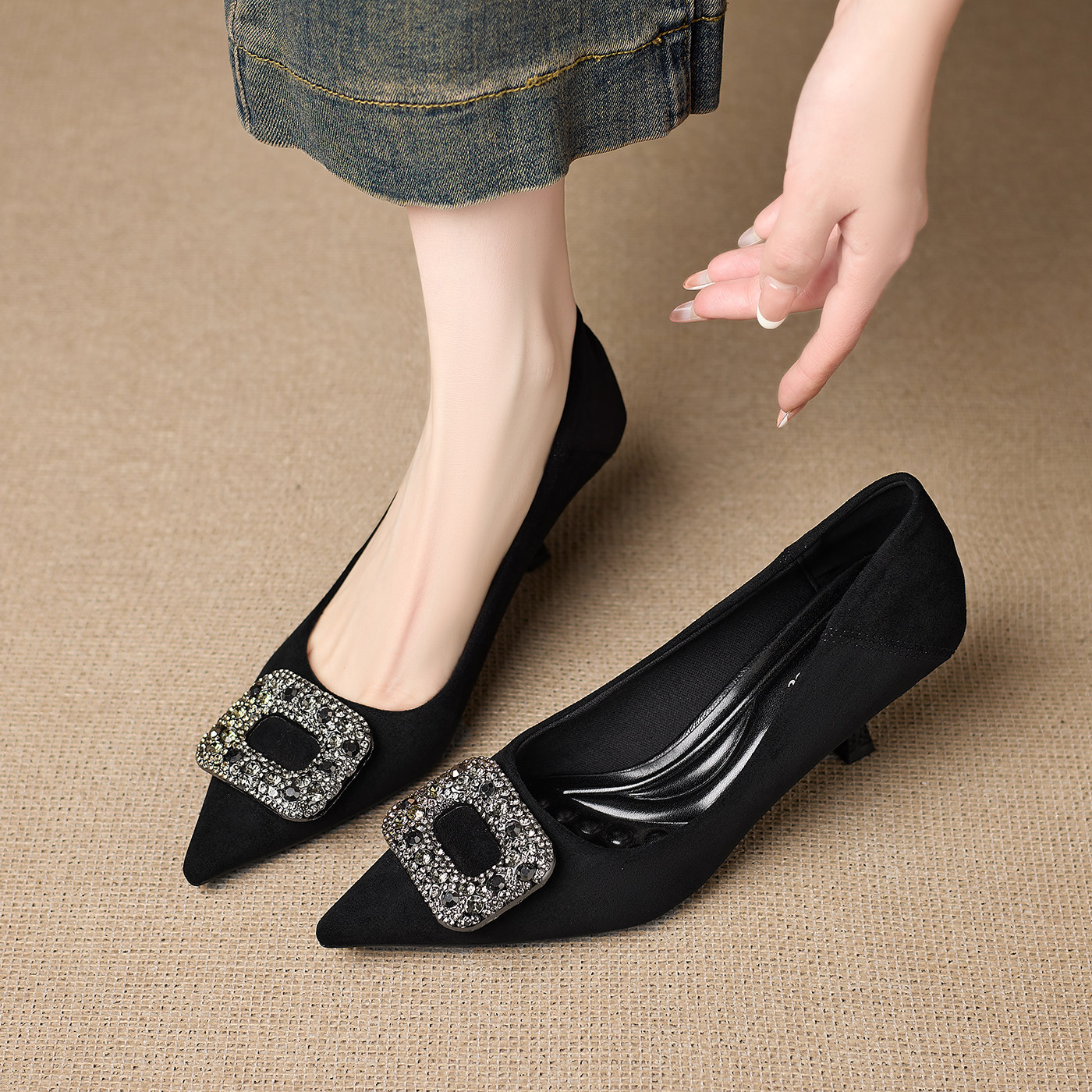 2025年新款黑色高跟鞋女细跟中跟5cm春秋职业工作舒适礼仪上班单8