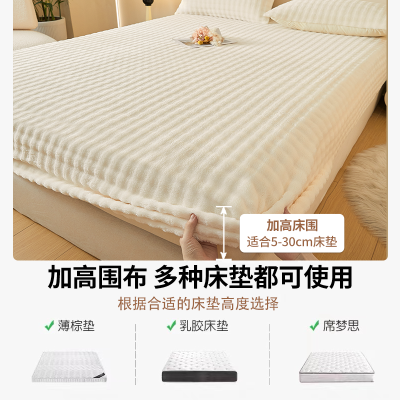兔毛绒床笠冬季加绒床垫套保暖牛奶珊瑚绒床罩床单套罩防滑保护罩