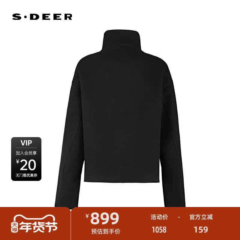 sdeer圣迪奥女装25年新品时尚立领撞色设计短款毛呢大衣S25482620