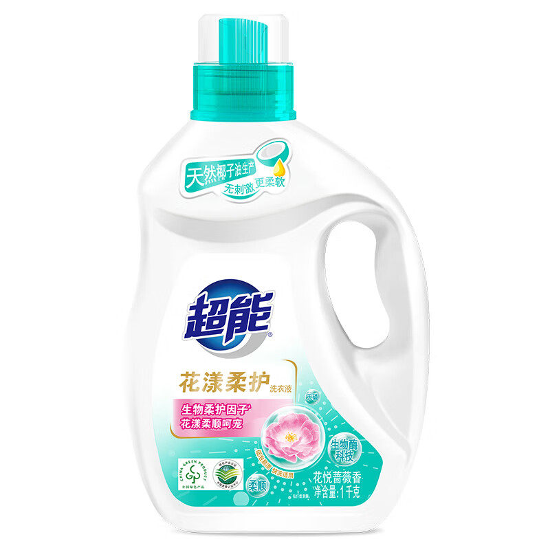 超能花漾柔护洗衣液持久留香护色2斤1kg*1瓶低泡酵素柔顺生物酶