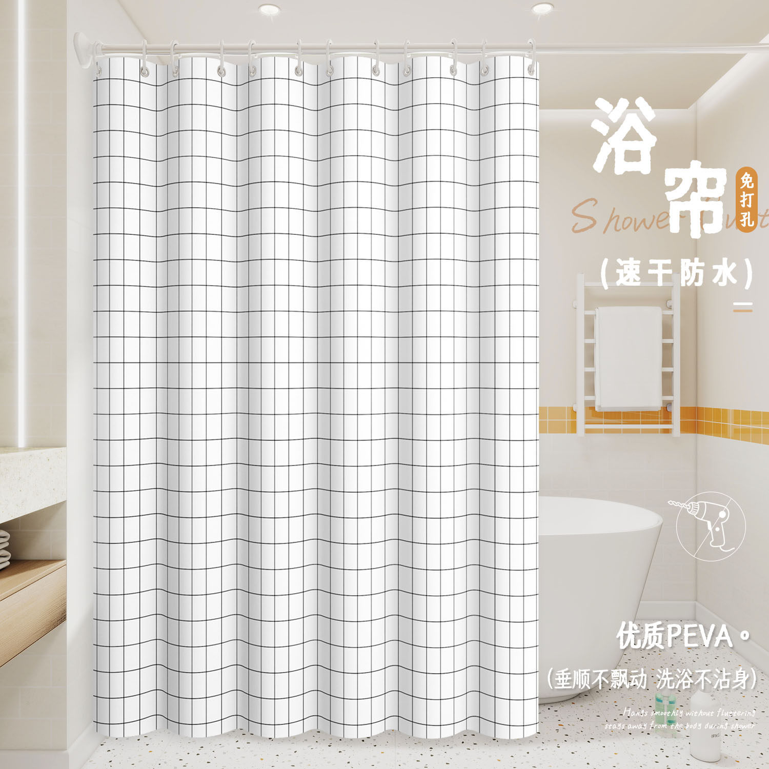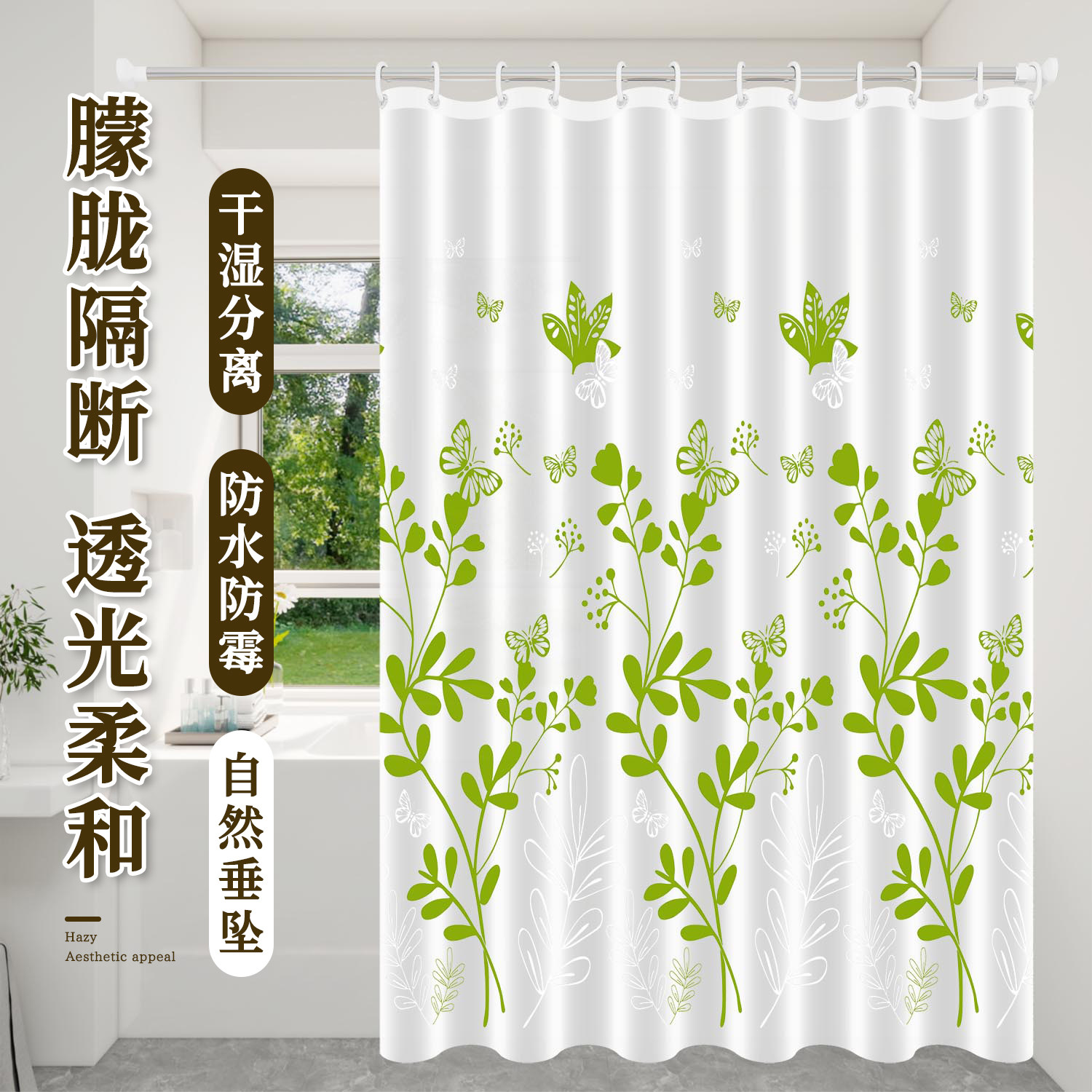 浴帘浴室防水防霉加厚卫生间隔断帘子淋浴帘挂帘套装免打孔防水帘