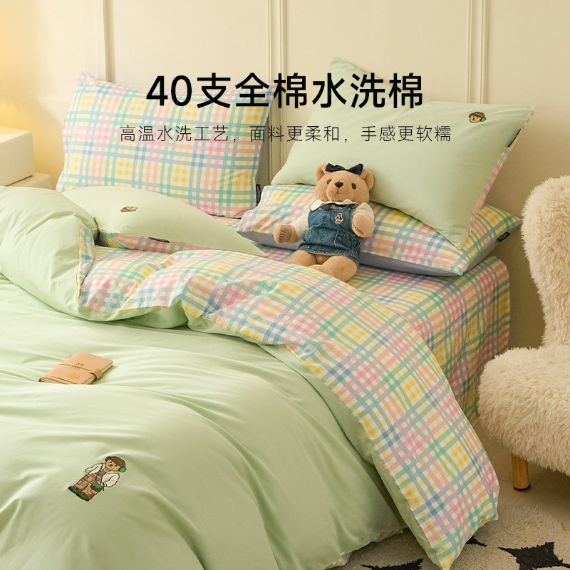 A类水洗棉双层纱四件套被罩非全棉纯棉床单人学生宿舍被套三件套