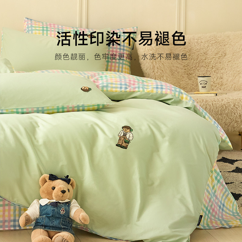 TeenieWeenie小熊绿色小清新纯棉四件套全棉被套床单人学生三件套