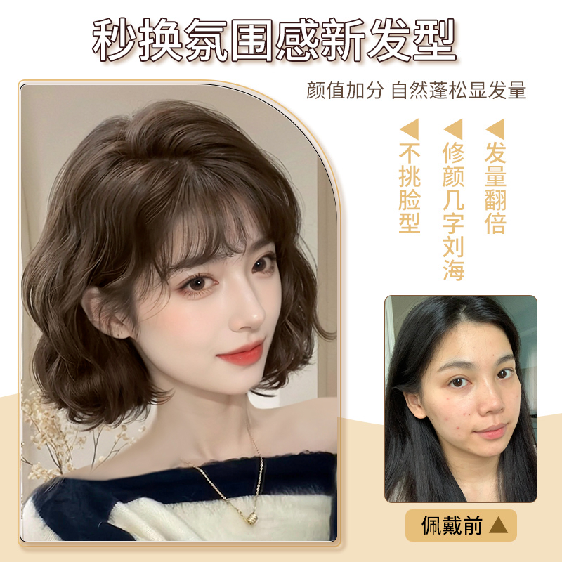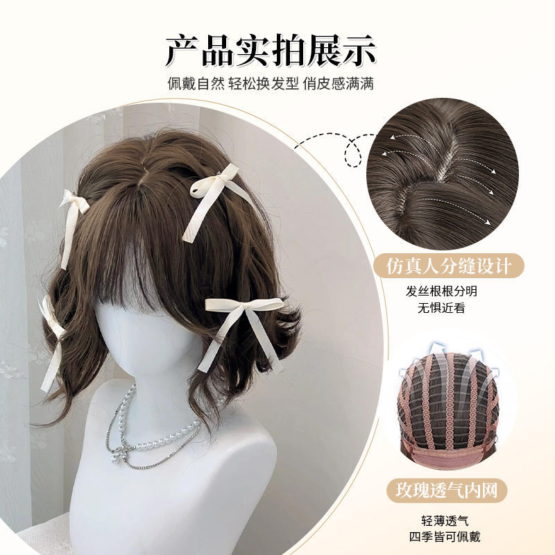 韩系短发假发女全头套日常蛋蛋卷仿真发发套卷发刘海发型中分蓬松