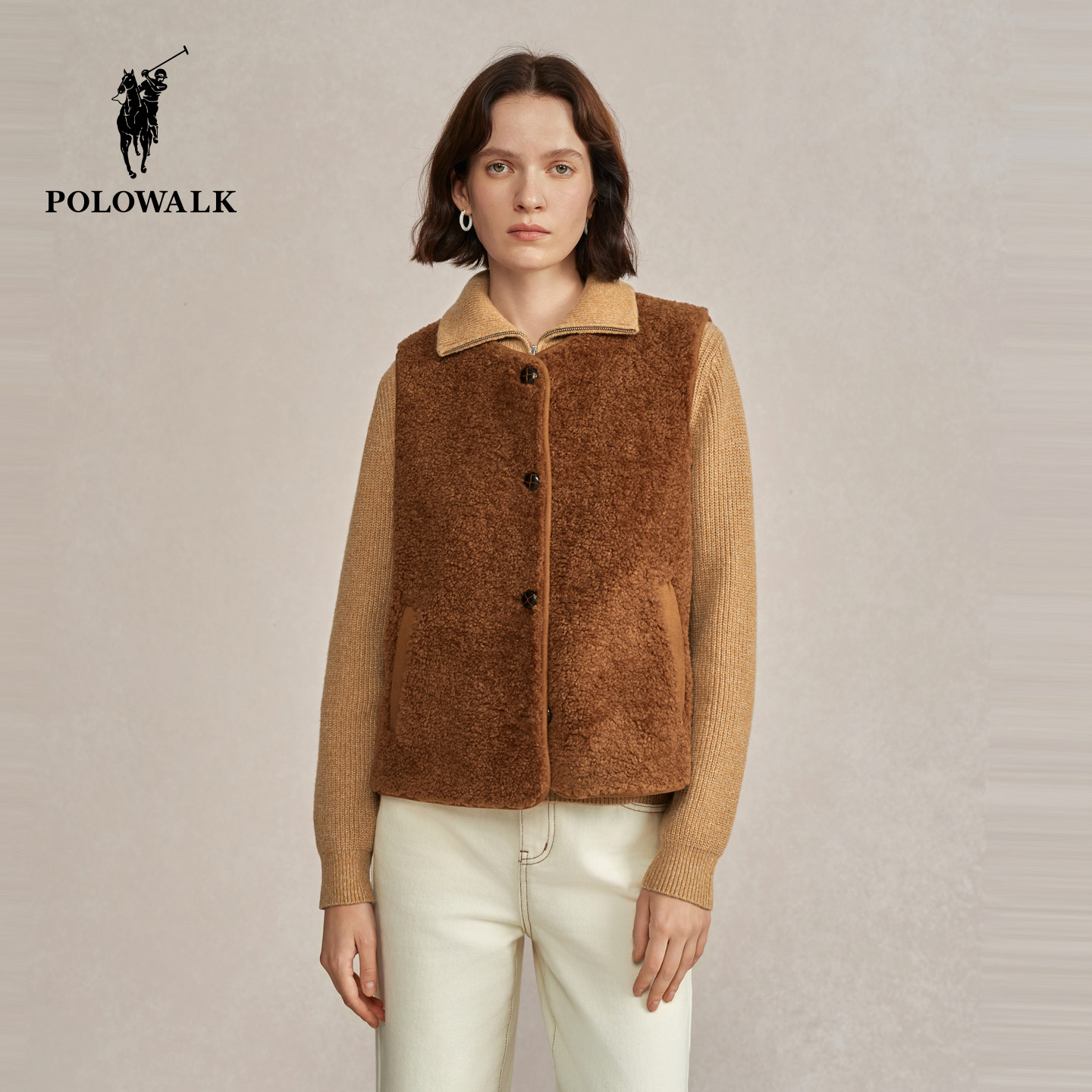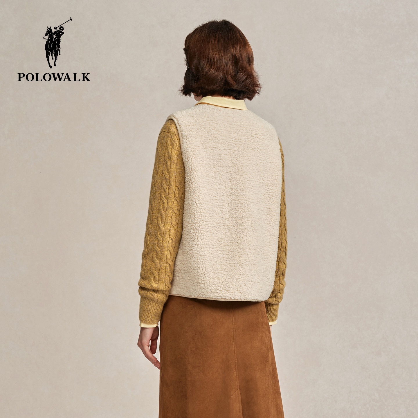 POLOWALK女装马甲2025秋冬新款羊羔绒圆领马甲内搭保暖背心外套女