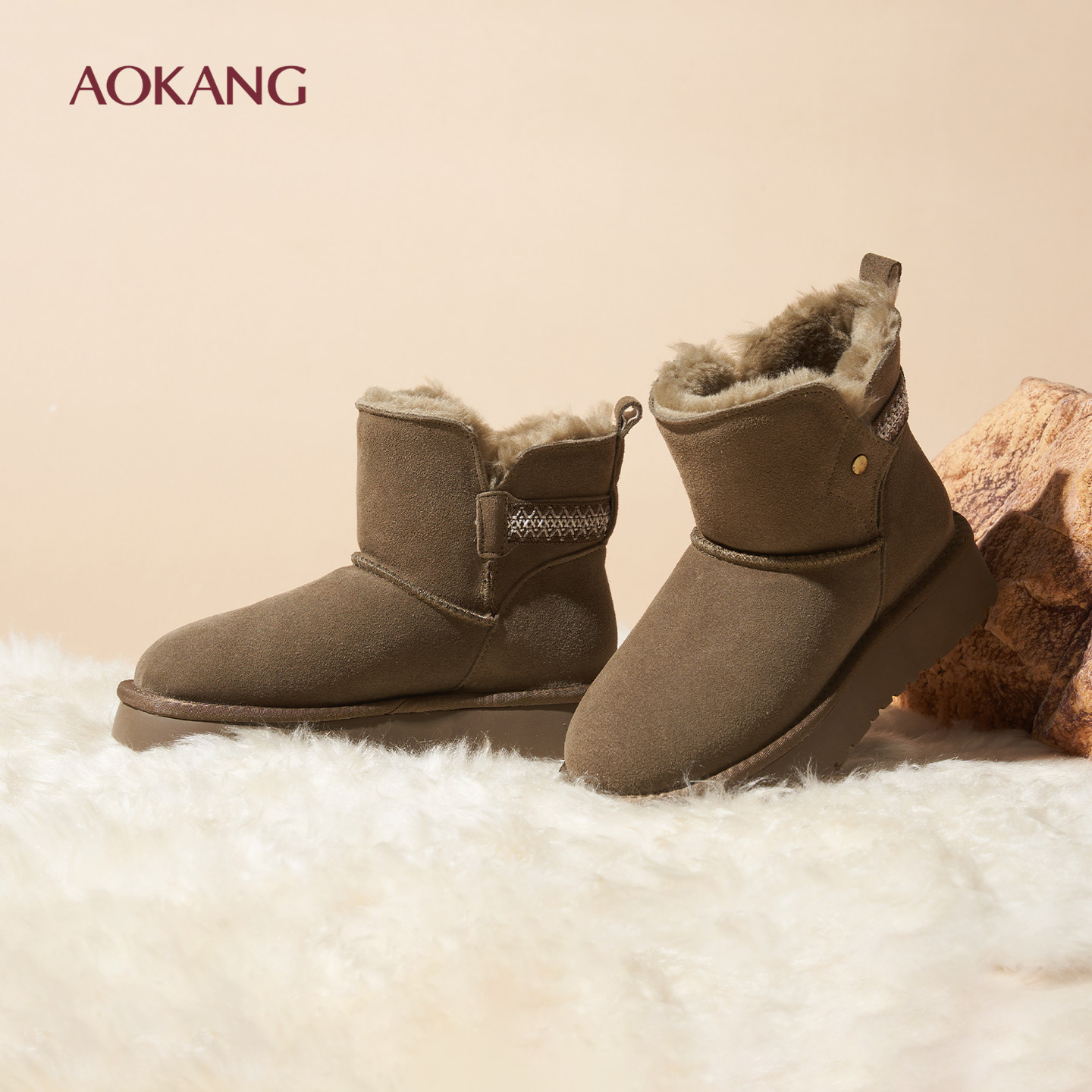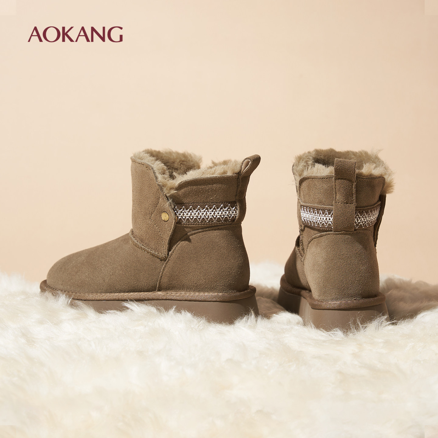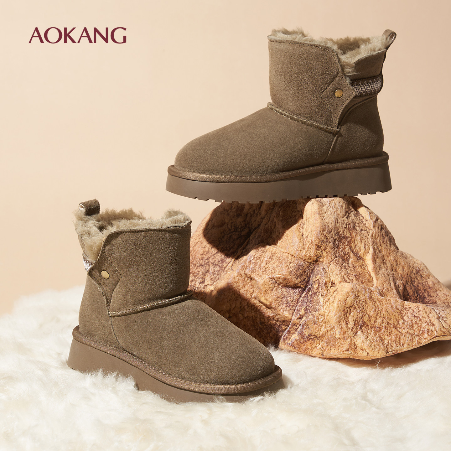 奥康 女鞋雪地靴2025年新款冬季百搭防滑加绒加厚羊毛保暖东北棉L