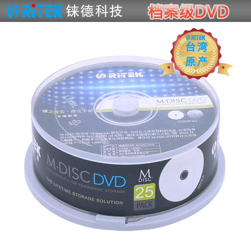 铼德(RITEK) 千年光盘 M-DISC DVD4.7G/蓝光25G 可打印/档案级/大容量/刻录盘/光碟/空白光盘 单片盒装