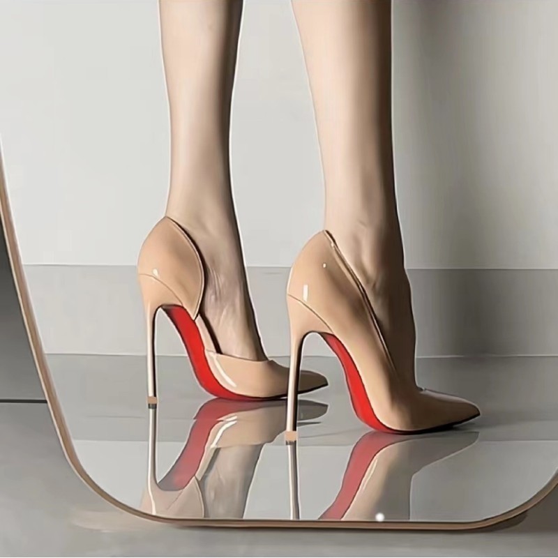 裸色高跟鞋女侧空红底2025春秋新款尖头细跟御姐性感约会黑色单鞋