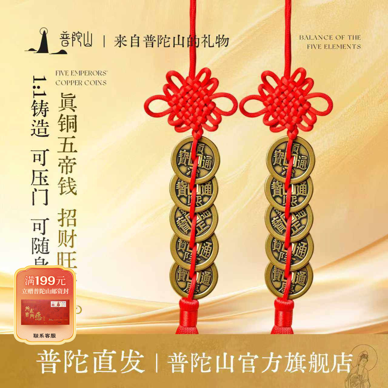 普陀山真铜五帝钱挂件手工编织红绳门对门招财风水家居吊饰招财