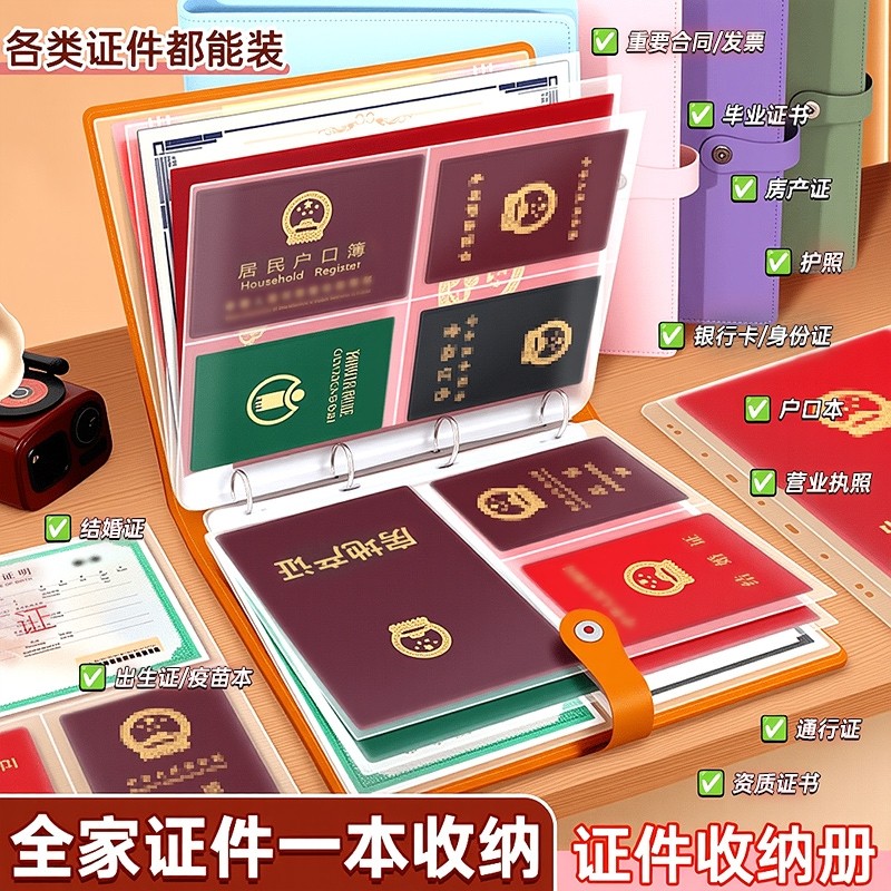 家庭证件收纳包家用a4收纳册证书卡包夹护照身份证房本资料文件袋