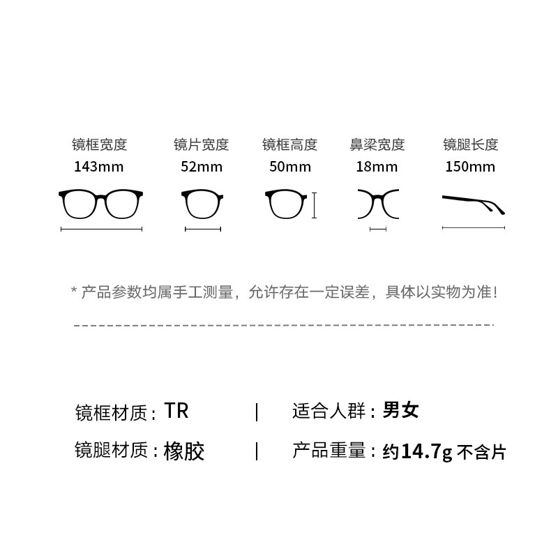 帕森时尚轻盈光学镜架女拼色TR框修颜显瘦定制近视眼镜男31050
