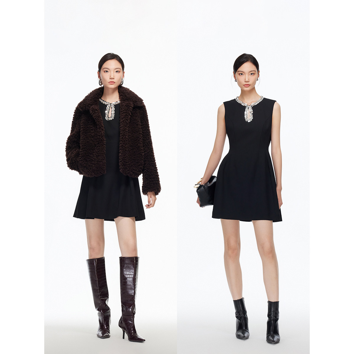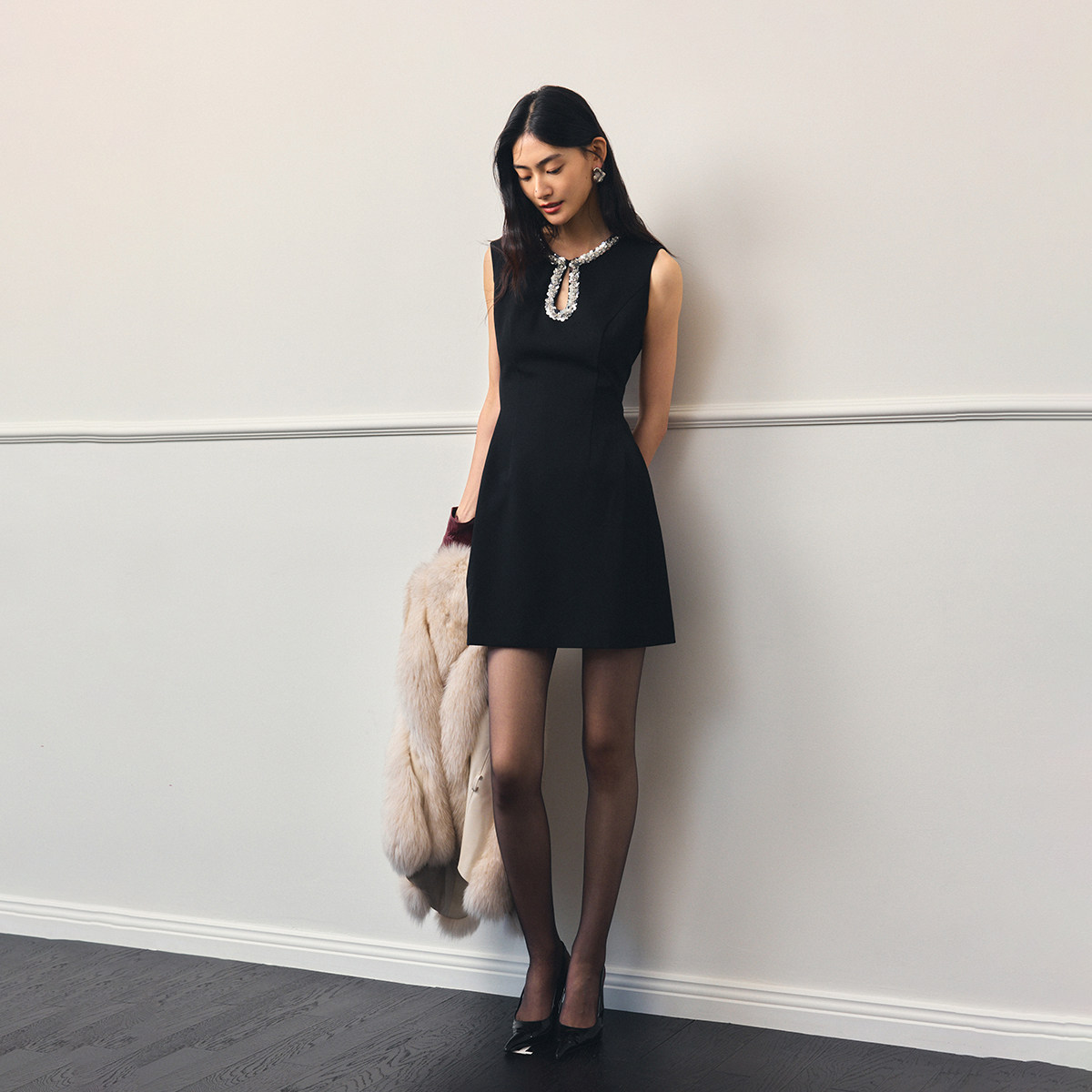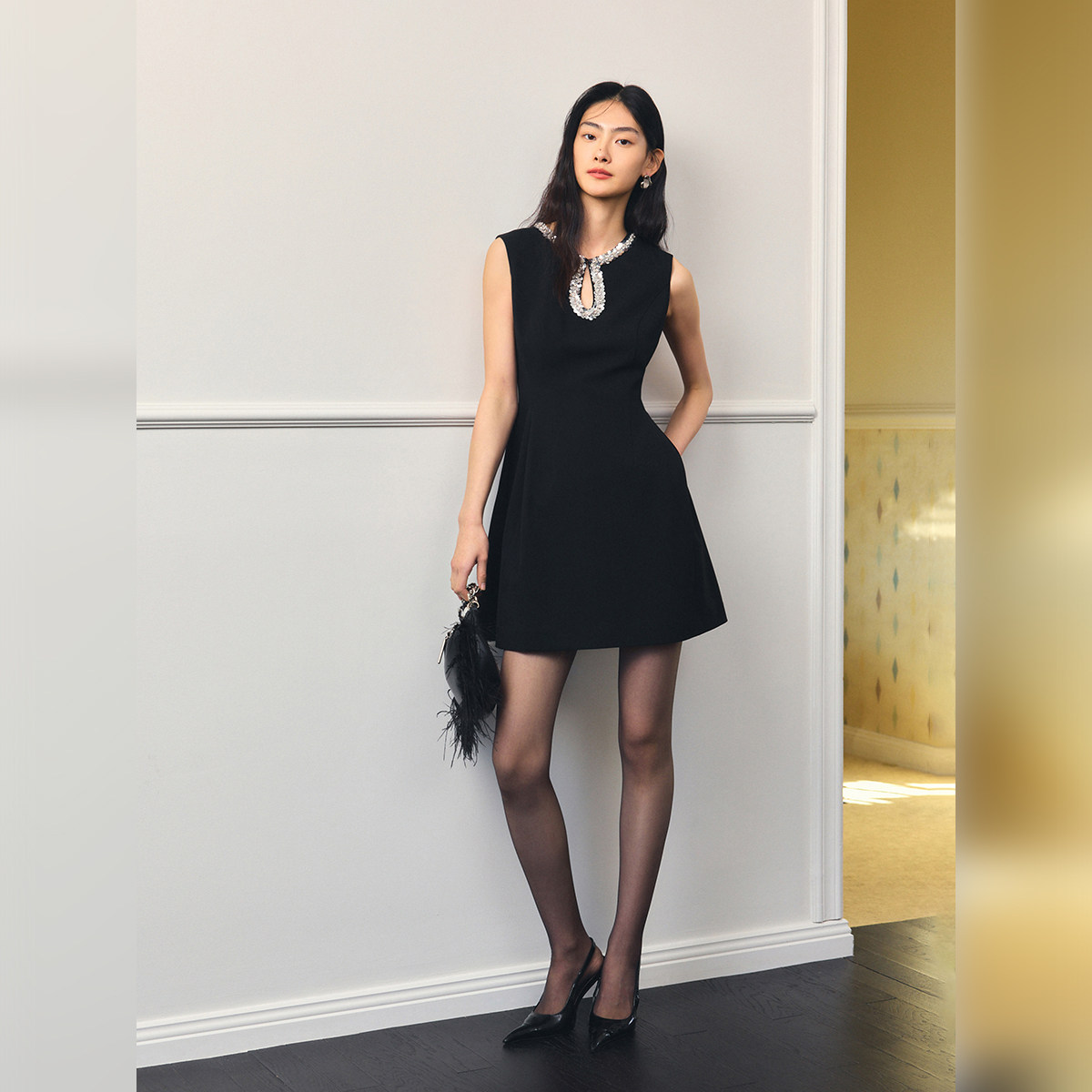 Vero Moda连衣裙2025秋冬亮片装饰领口收腰A字年会礼服优雅千金风