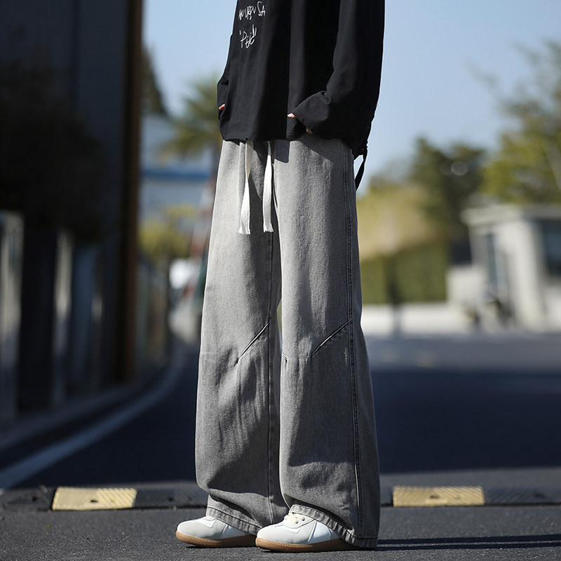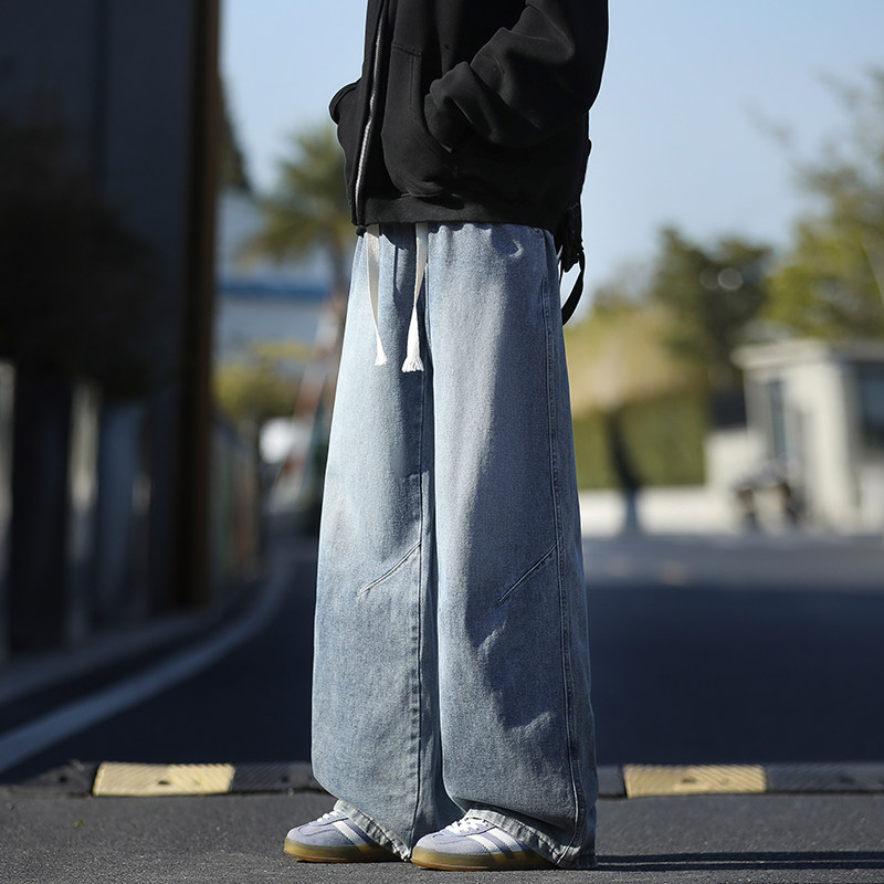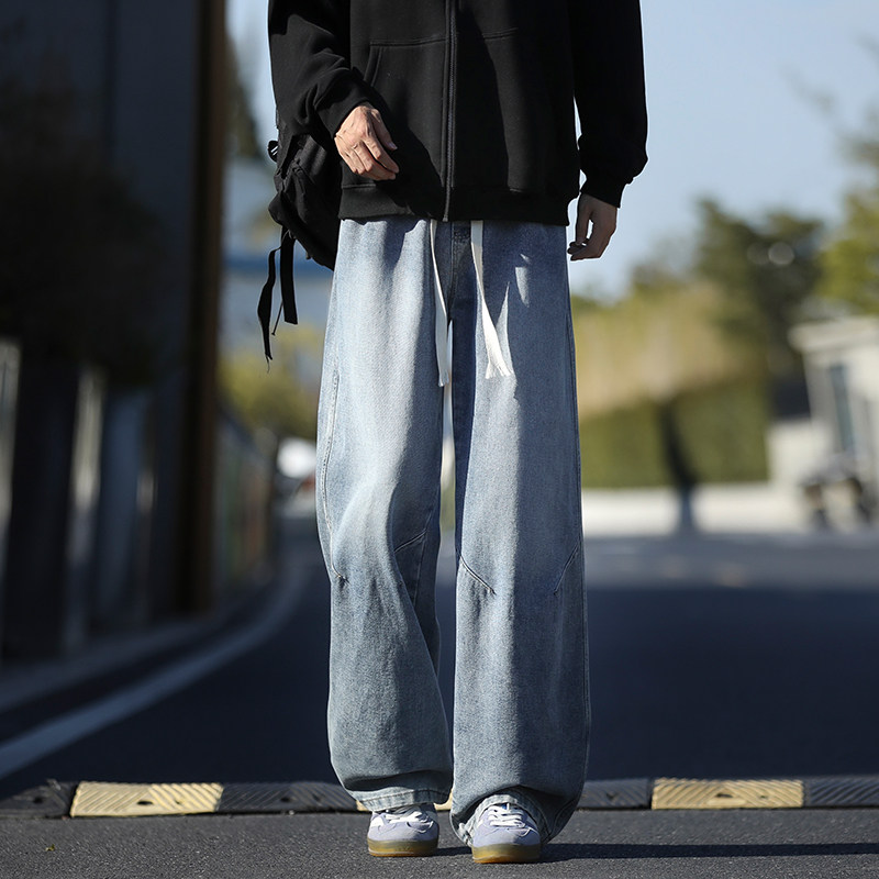 阔腿牛仔裤男士2025春秋新款美式复古宽松大码冬季休闲直筒裤子男