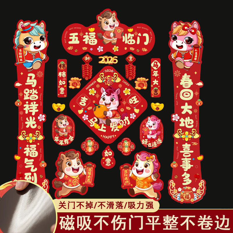 马年对联全磁吸门贴春联2026年新款新年春节可爱门联过年创意装饰