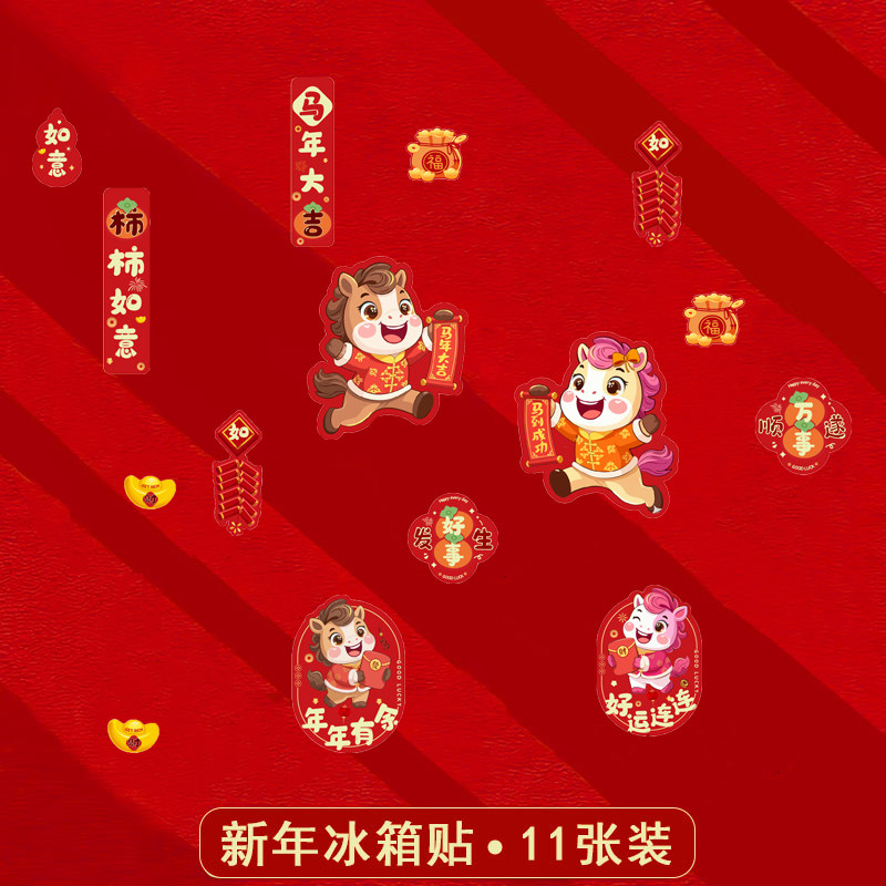 2026新年装饰品马年门锁磁吸迷你小对联智能锁入户门贴纸春联