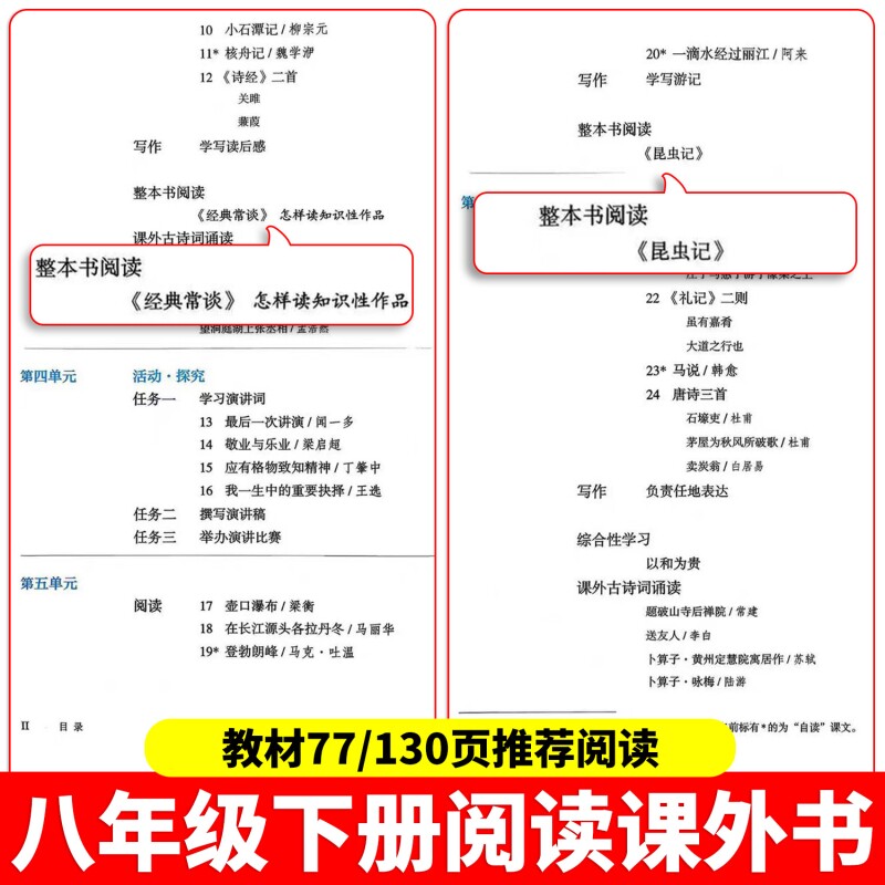 正版原著经典常谈和昆虫记八年级下册必读书课外阅读名著人教版教材语文初二中学生书籍完整版朱自清读物文学初中古诗词文言文文化