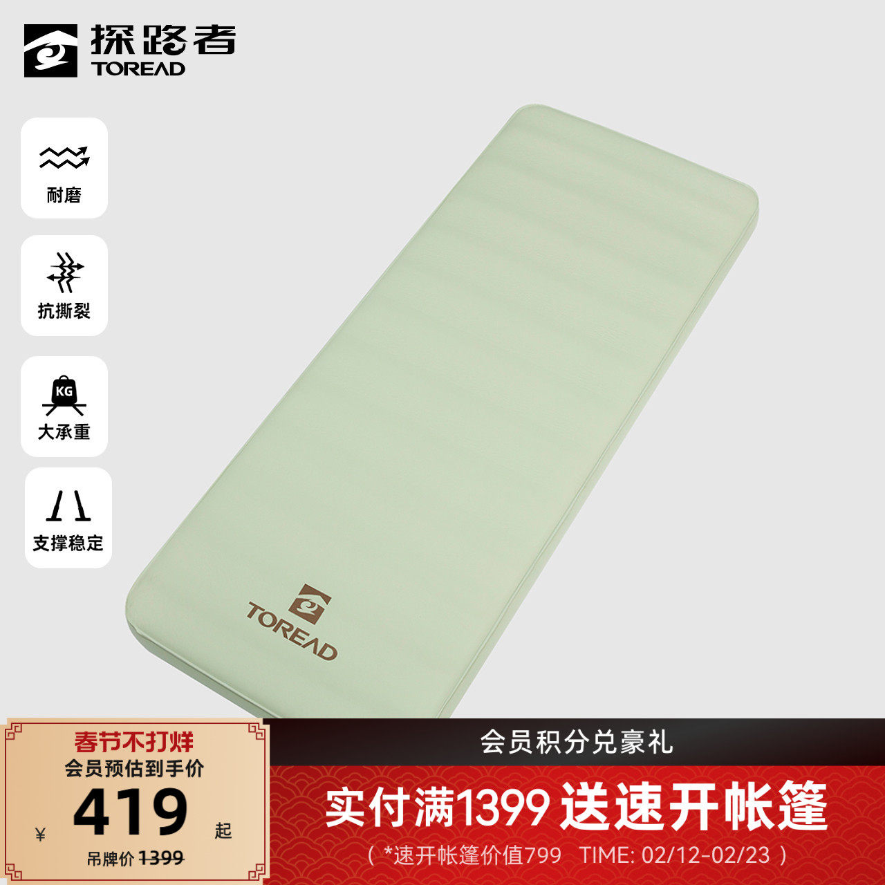 探路者装备户外自动充气垫子单人午睡耐磨露营床垫睡垫防潮垫坐垫