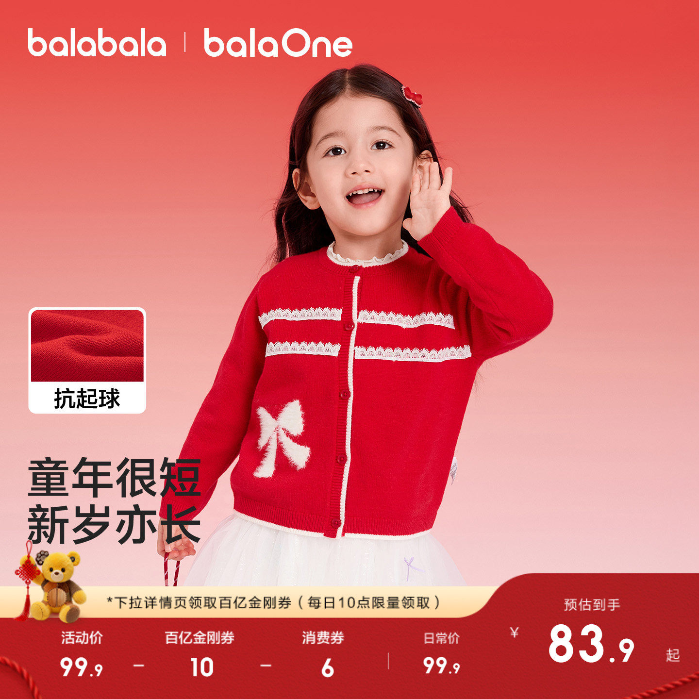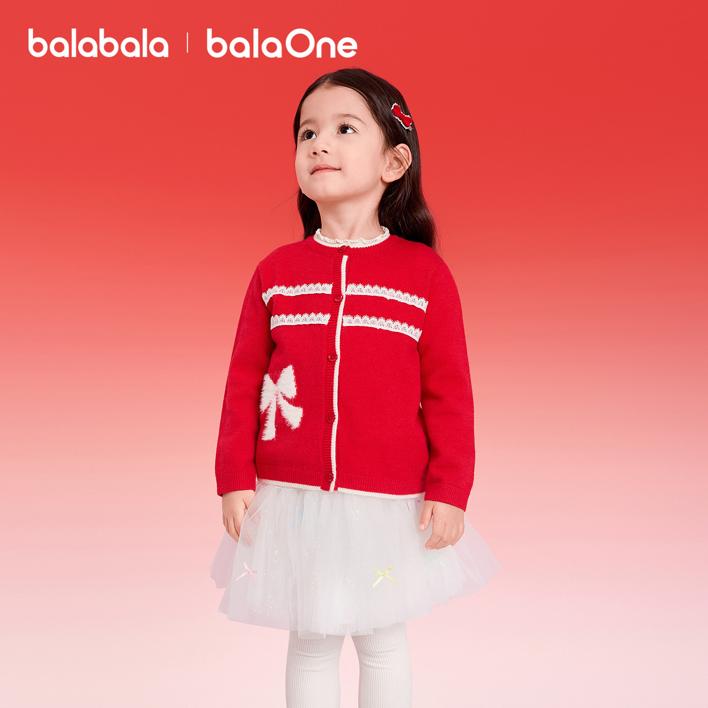 巴拉巴拉童装女童毛衫小香风针织衫2026新款春秋季开衫红色拜年服