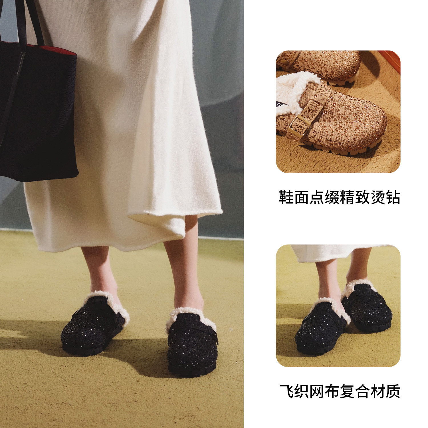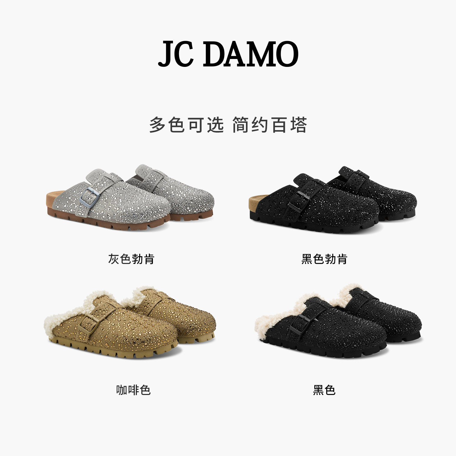 【冬季也可穿】JCDAMO设计师款冬季星闪勃肯鞋保暖毛毛拖鞋包头拖