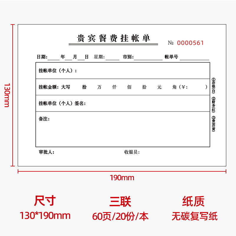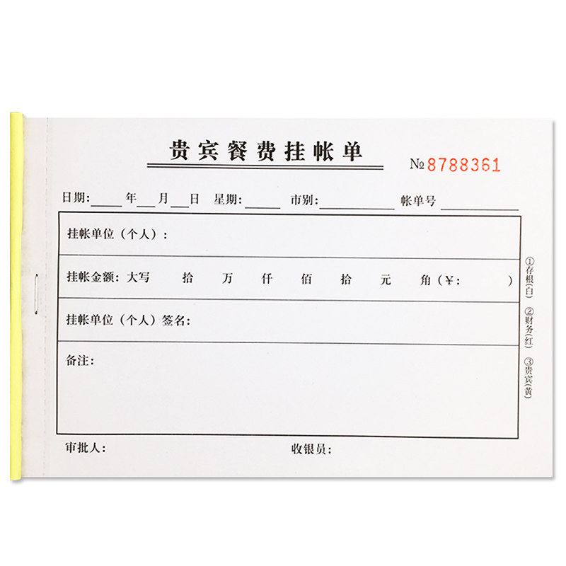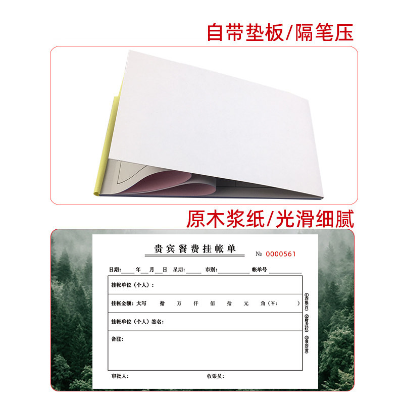 10本装贵宾餐费挂帐单三联酒楼餐饮结算记账签账欠款挂账单据定做