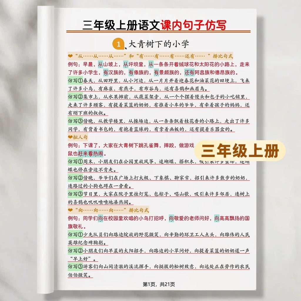 四年级上册重点仿写句子汇总同步课本例句仿写语文知识点预习复习