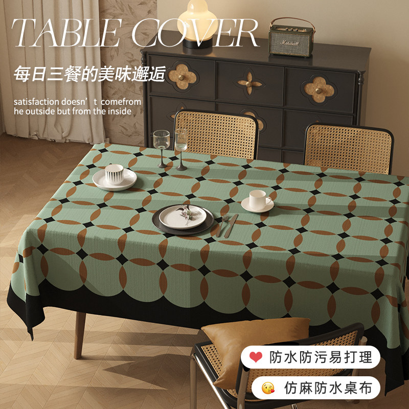 中古风桌布免洗防水防油防烫桌垫复古餐桌台布轻奢高级感茶几盖布
