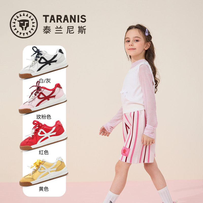 泰兰尼斯童鞋春秋款儿童板鞋德训运动鞋防滑男童红色女童慢跑鞋子