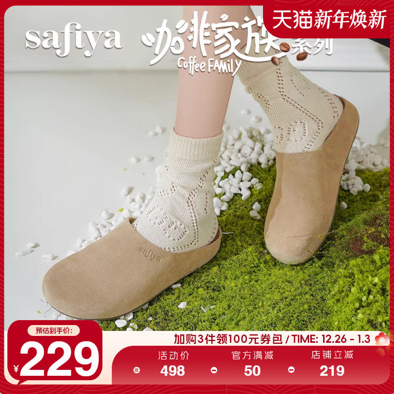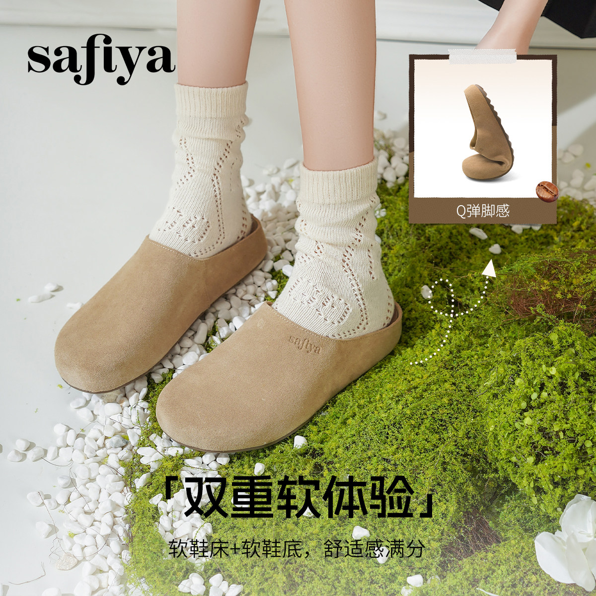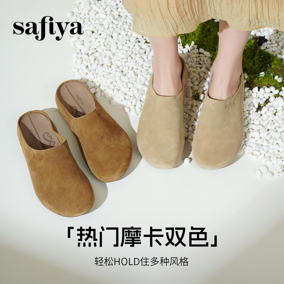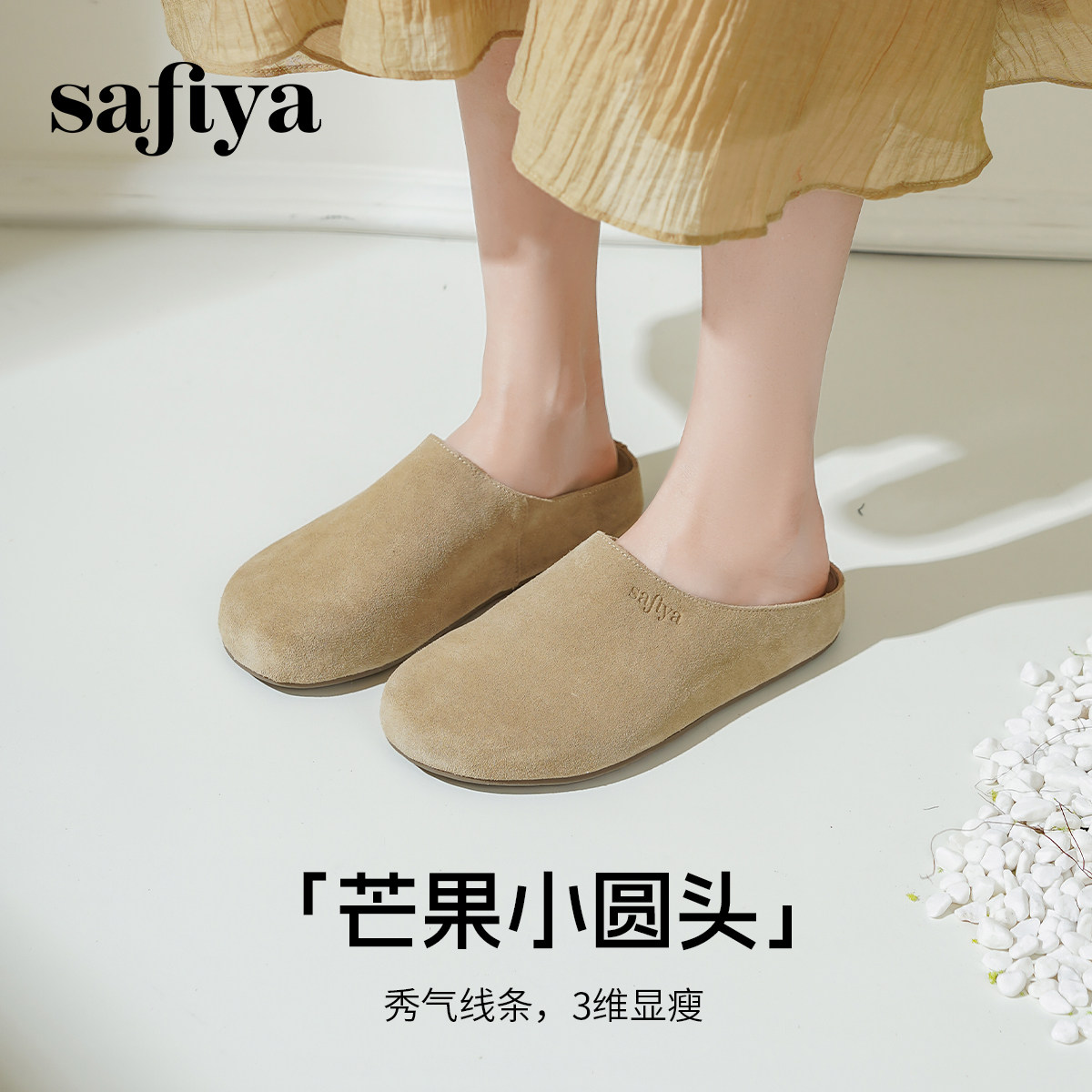 Safiya索菲娅2025春软底休闲外穿懒人一脚蹬舒适包头拖鞋勃肯鞋女