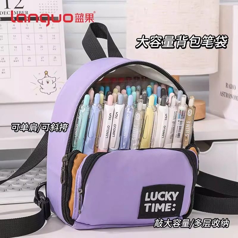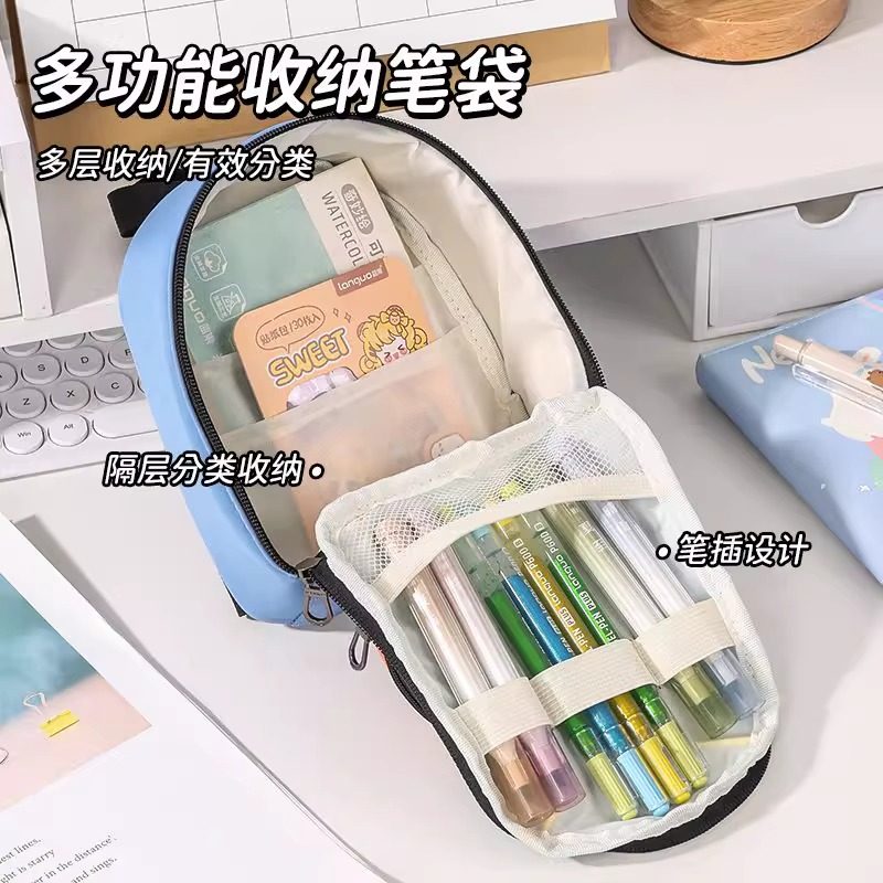 蓝果大容量收纳笔袋高颜值ins风小众不撞款女生2026新款超火小学生多功能收纳包文具袋男孩铅笔盒多层带抽绳