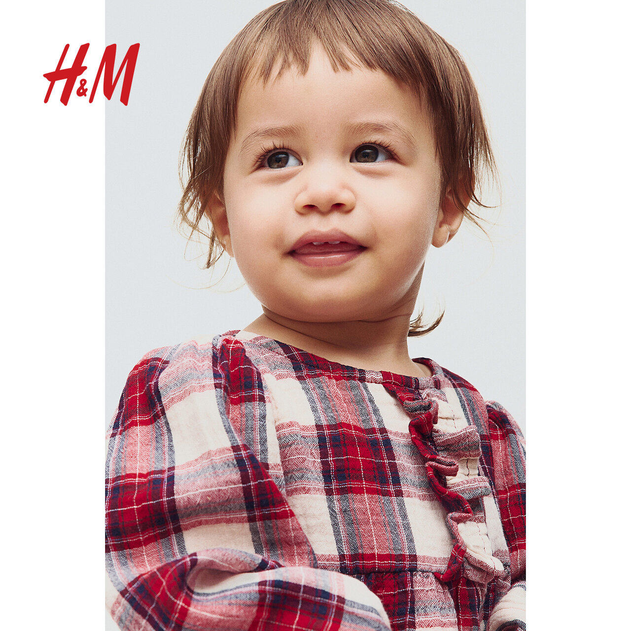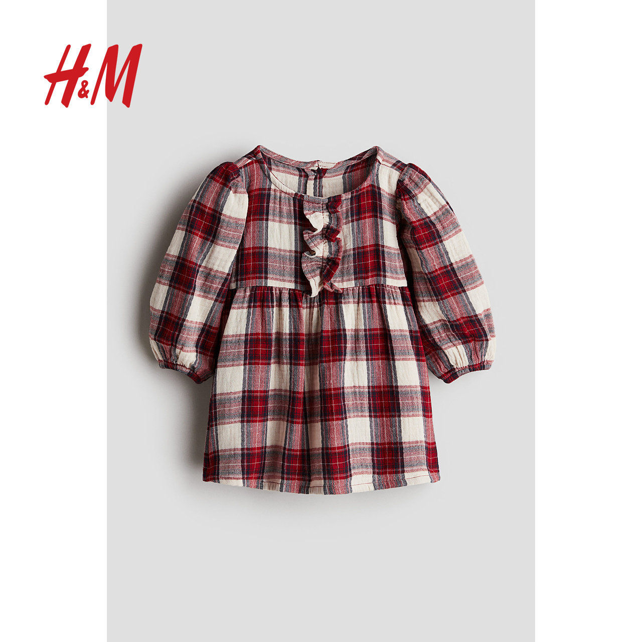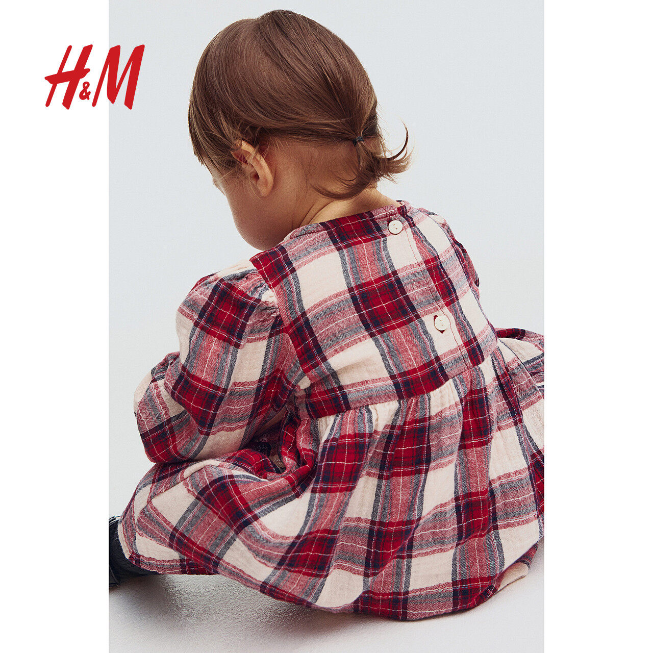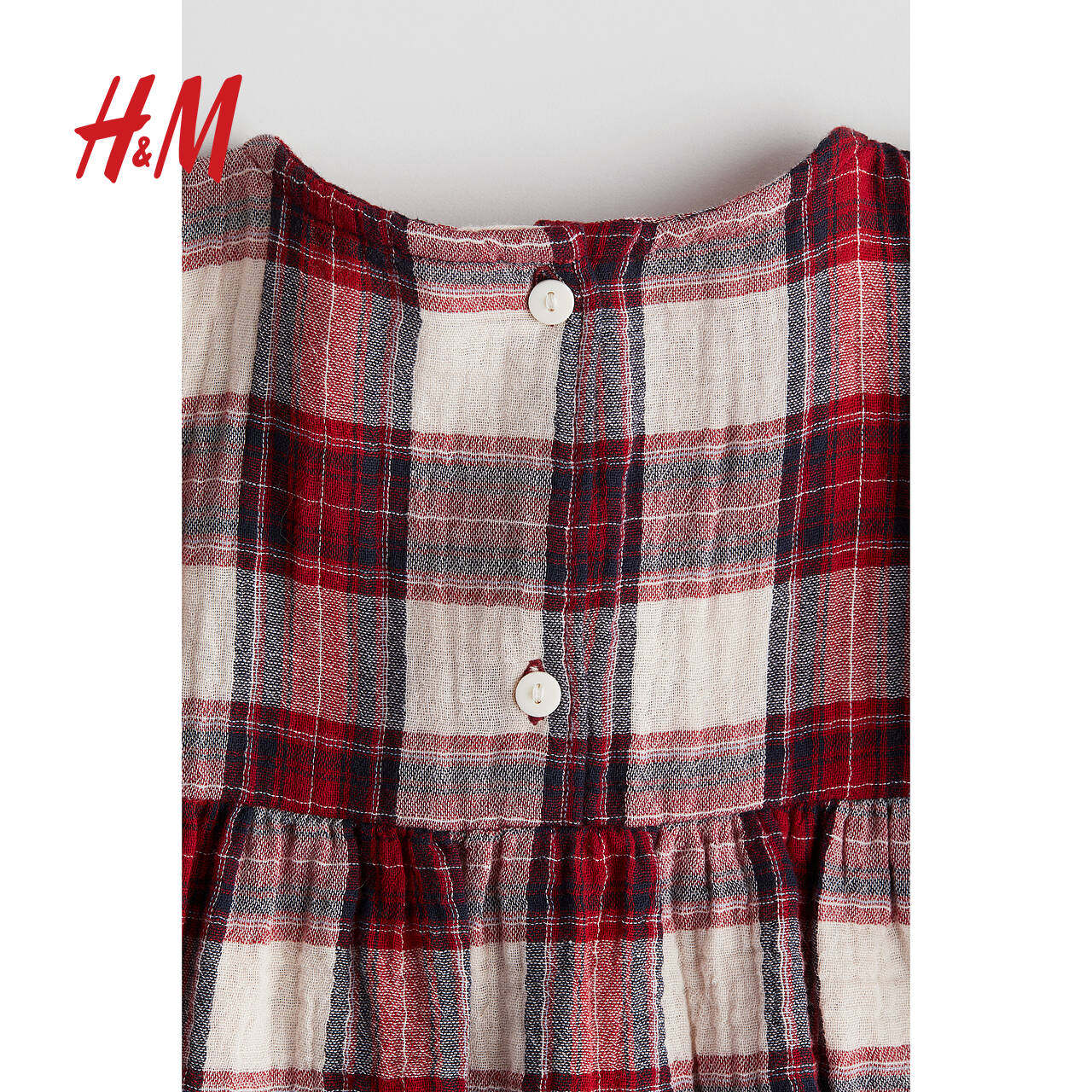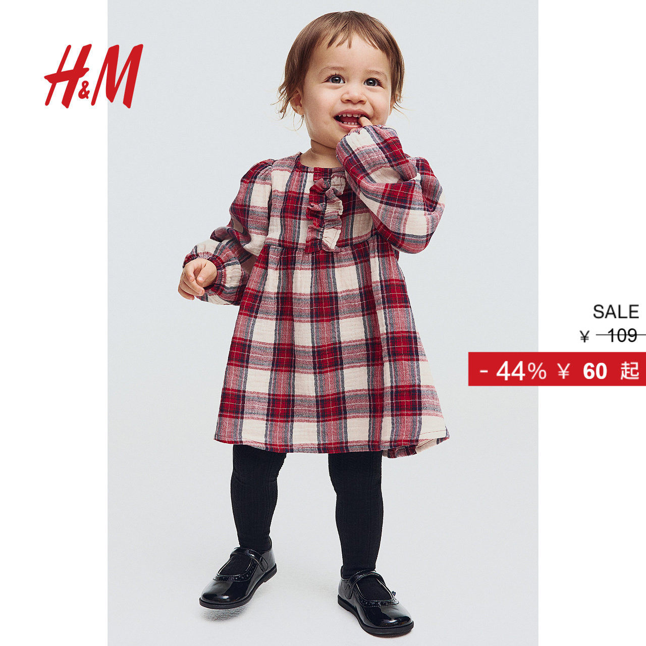HM童装女婴连衣裙冬季深红色可爱简约宽松柔软格子公主裙1253317